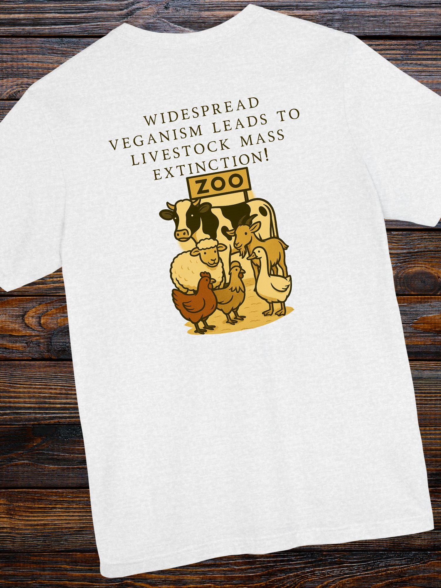 'Widespread Veganism Leads to Livestock Mass Extinction' Livestock in a Zoo Graphic Unisex T-Shirt, Gift for Anti-Vegans, Ethical Lifestyle Shirt