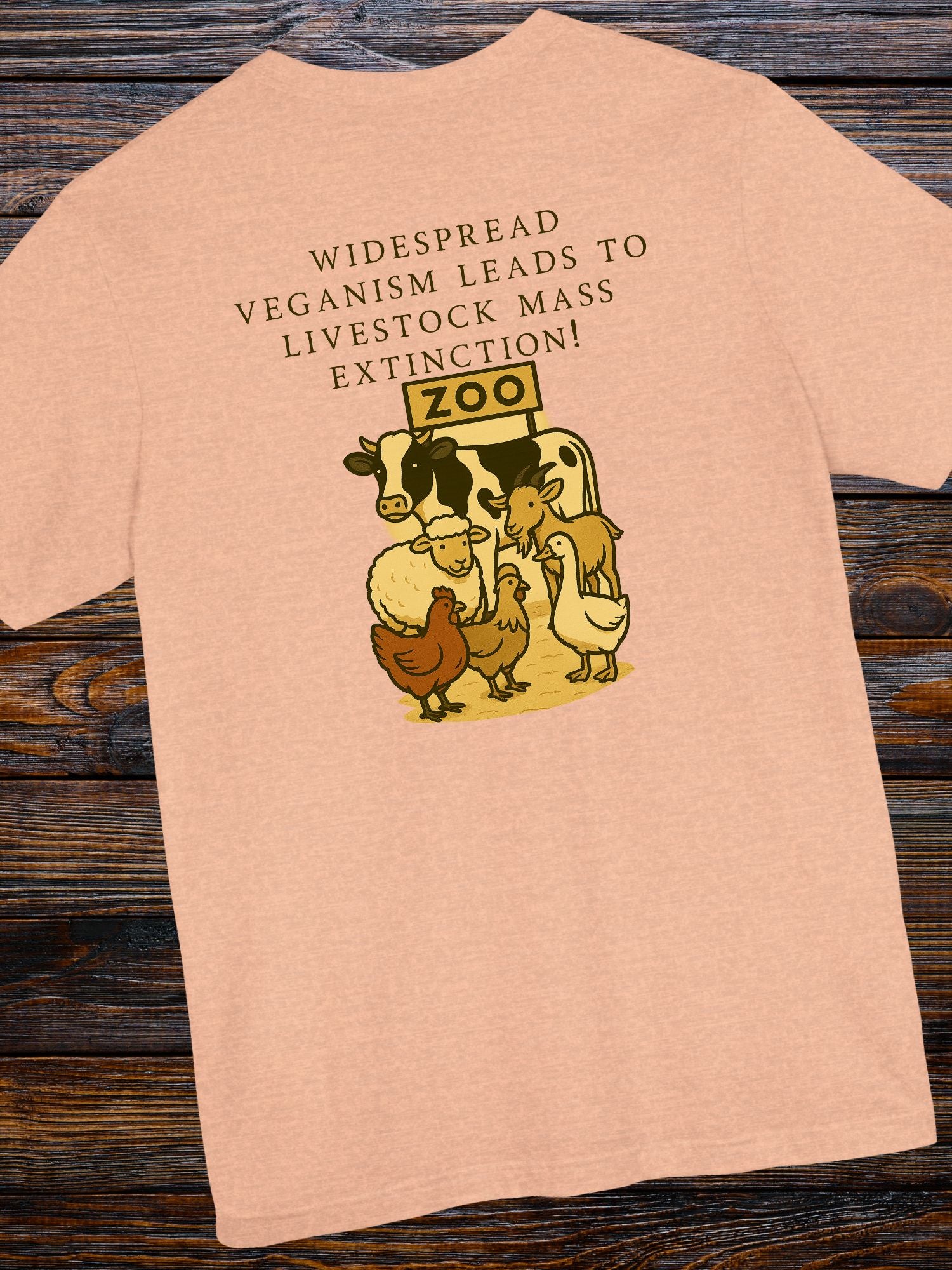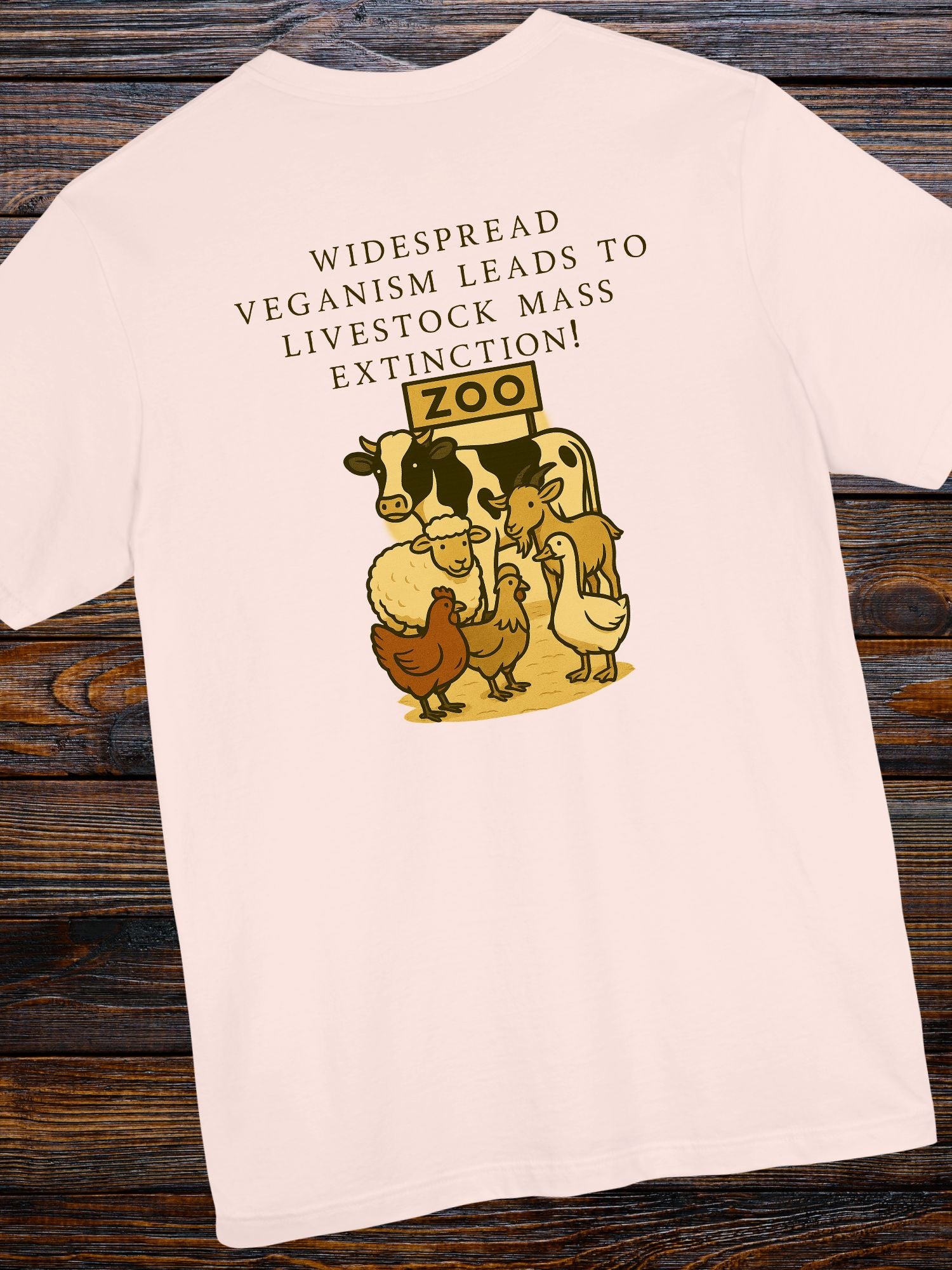'Widespread Veganism Leads to Livestock Mass Extinction' Livestock in a Zoo Graphic Unisex T-Shirt. Printed on a quality Bella+Canvas 3001 T-Shirt.