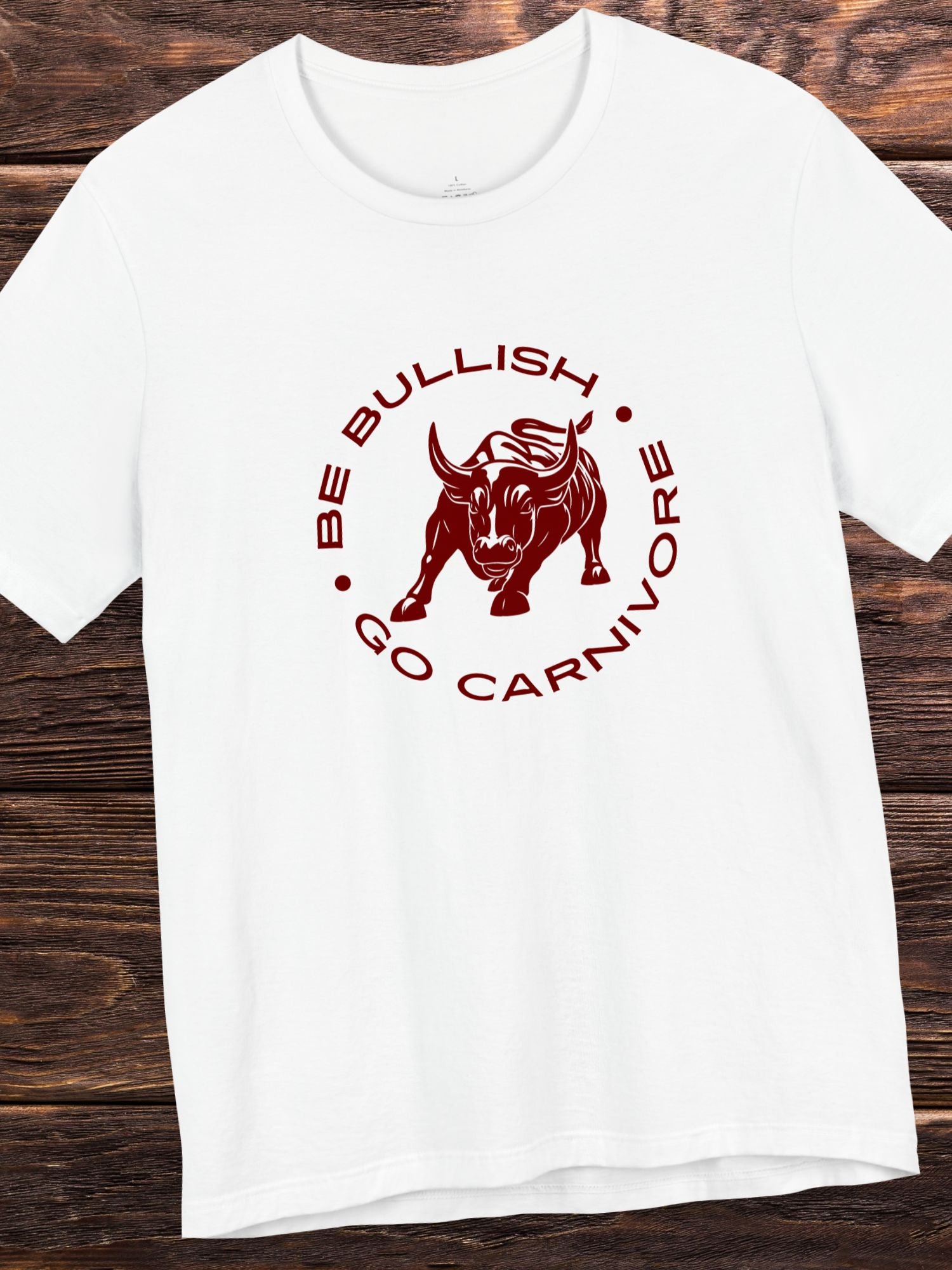 'Be Bullish, Go Carnivore' Wall Street Bull Graphic Unisex T-Shirt. Printed on a quality Bella+Canvas 3001 T-Shirt.
