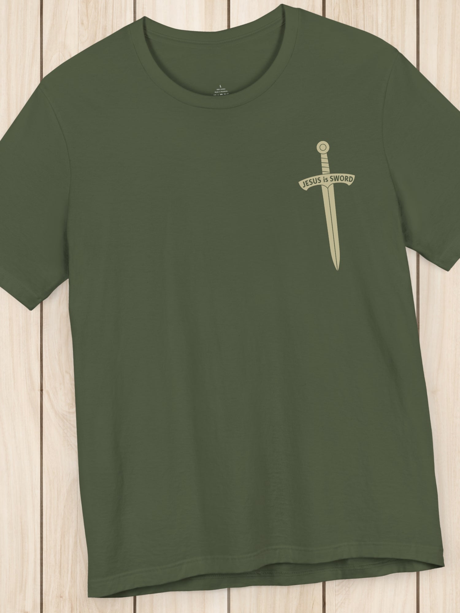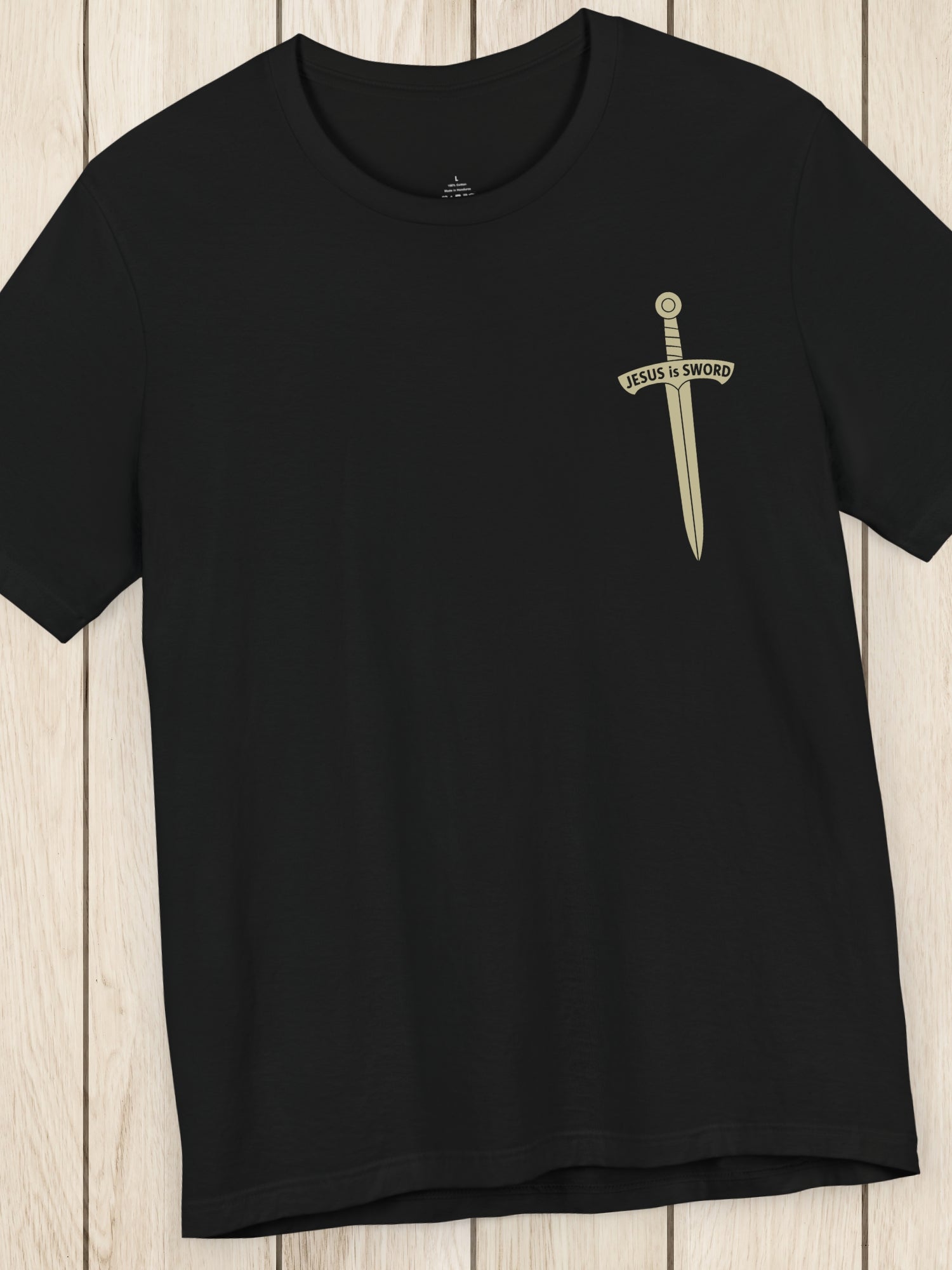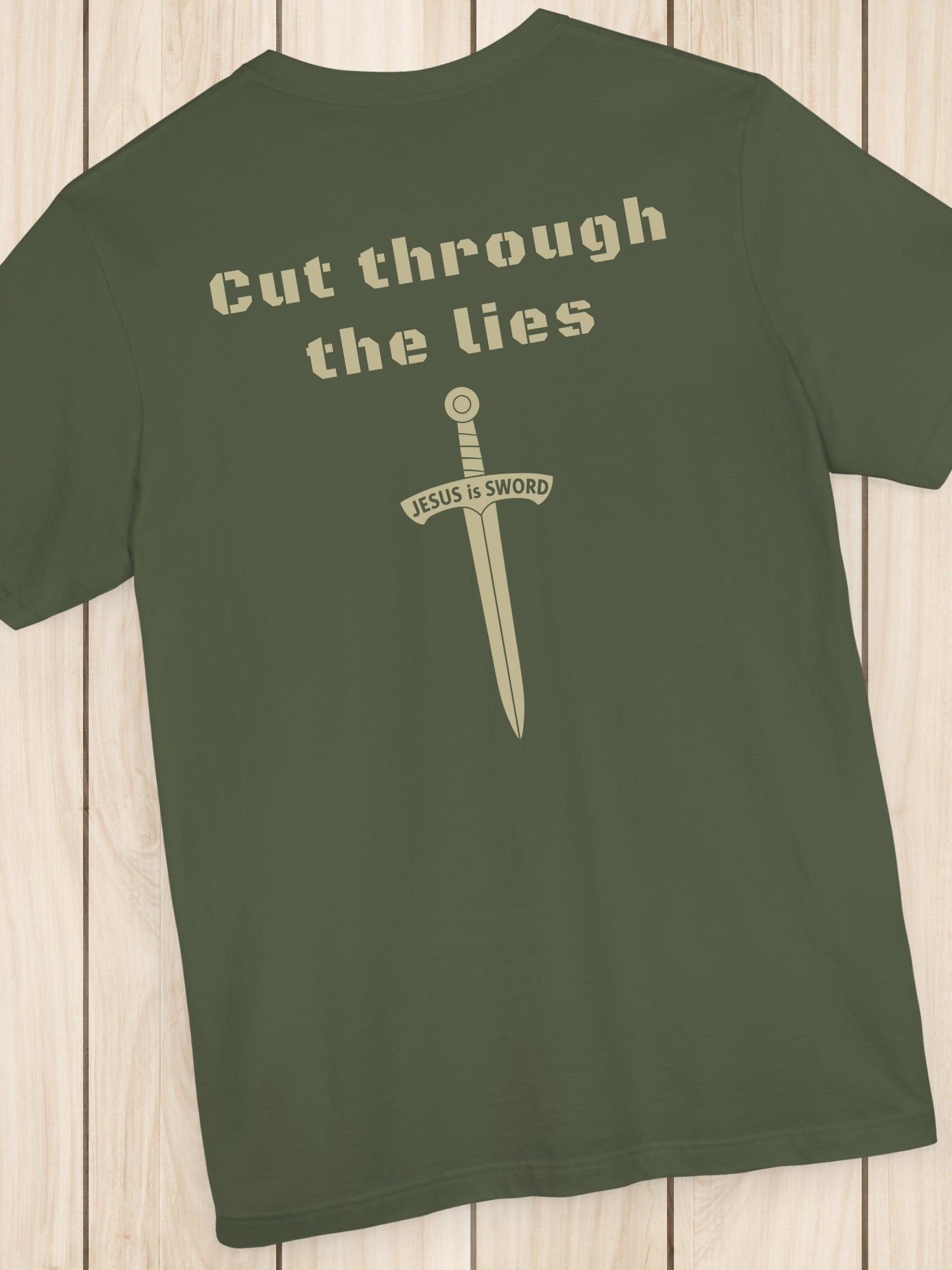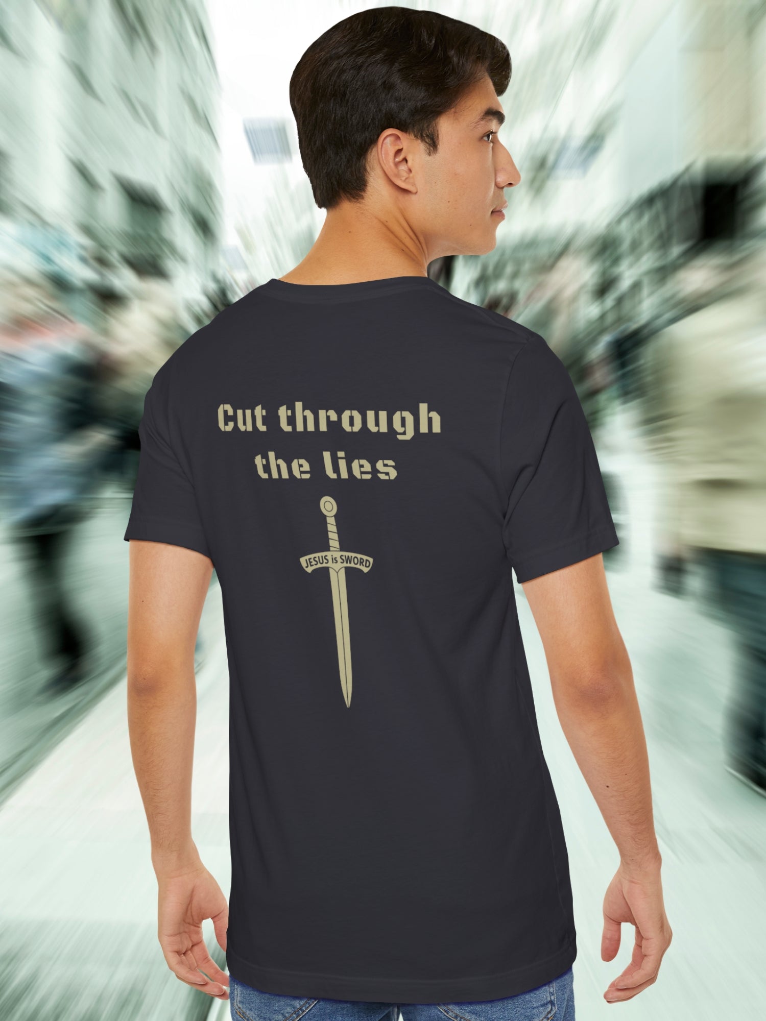 'Cut through the lies, JESUS is SWORD' Unisex T-Shirt. Printed on a quality Bella+Canvas 3001 T-Shirt.