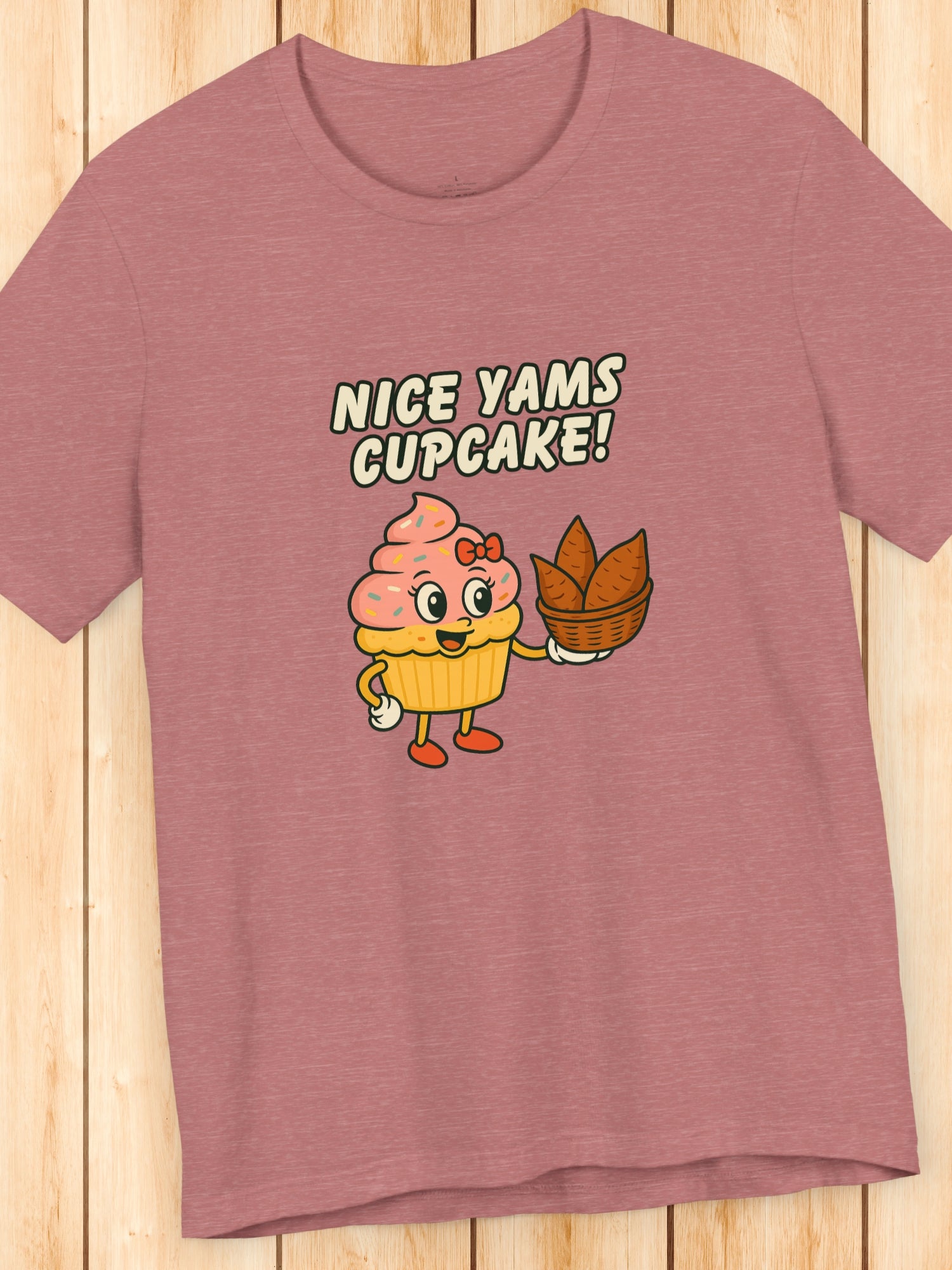'Nice Yams Cupcake!' Cute Cupcake Graphic Unisex T-Shirt, Food Lovers Apparel