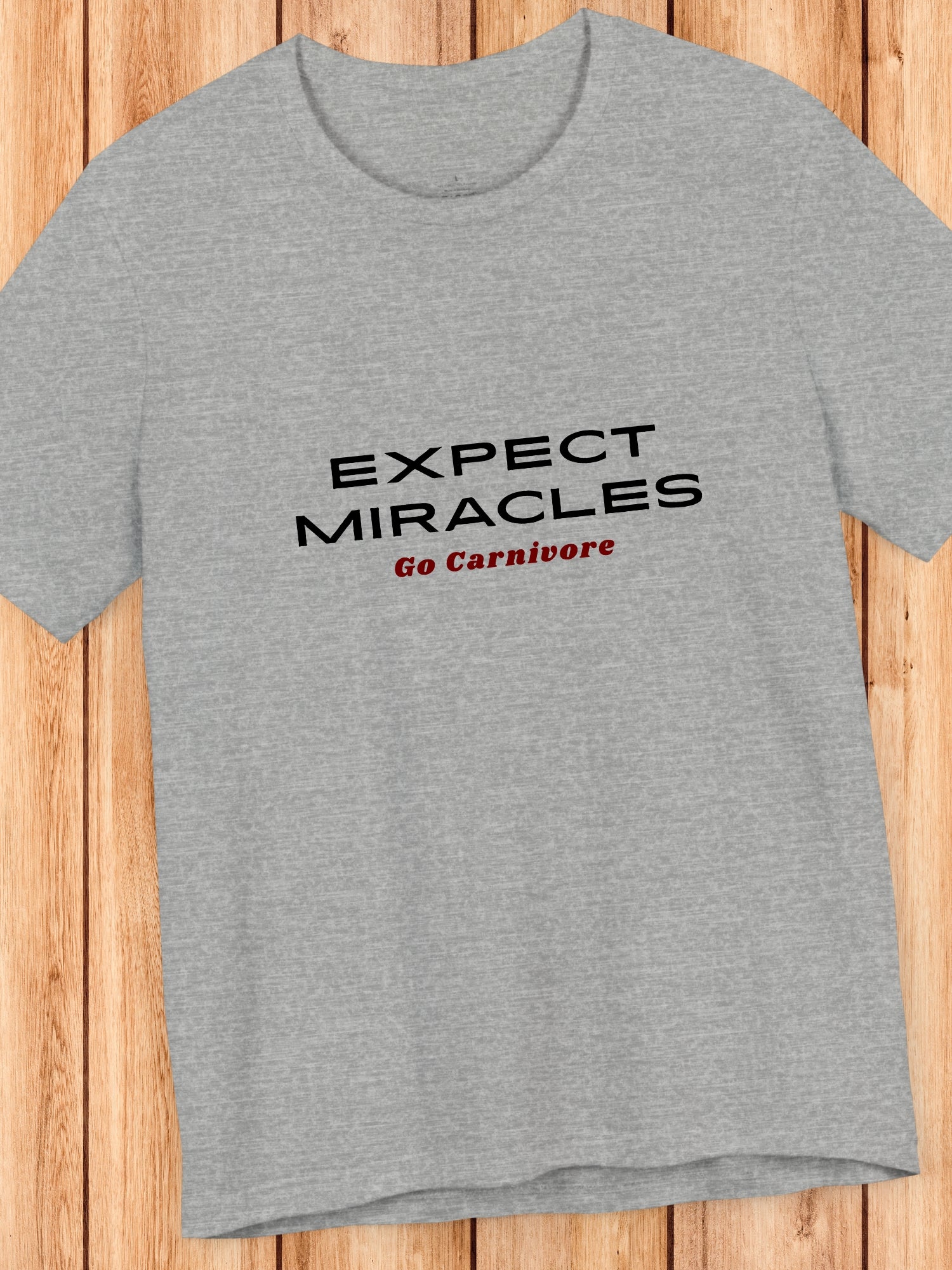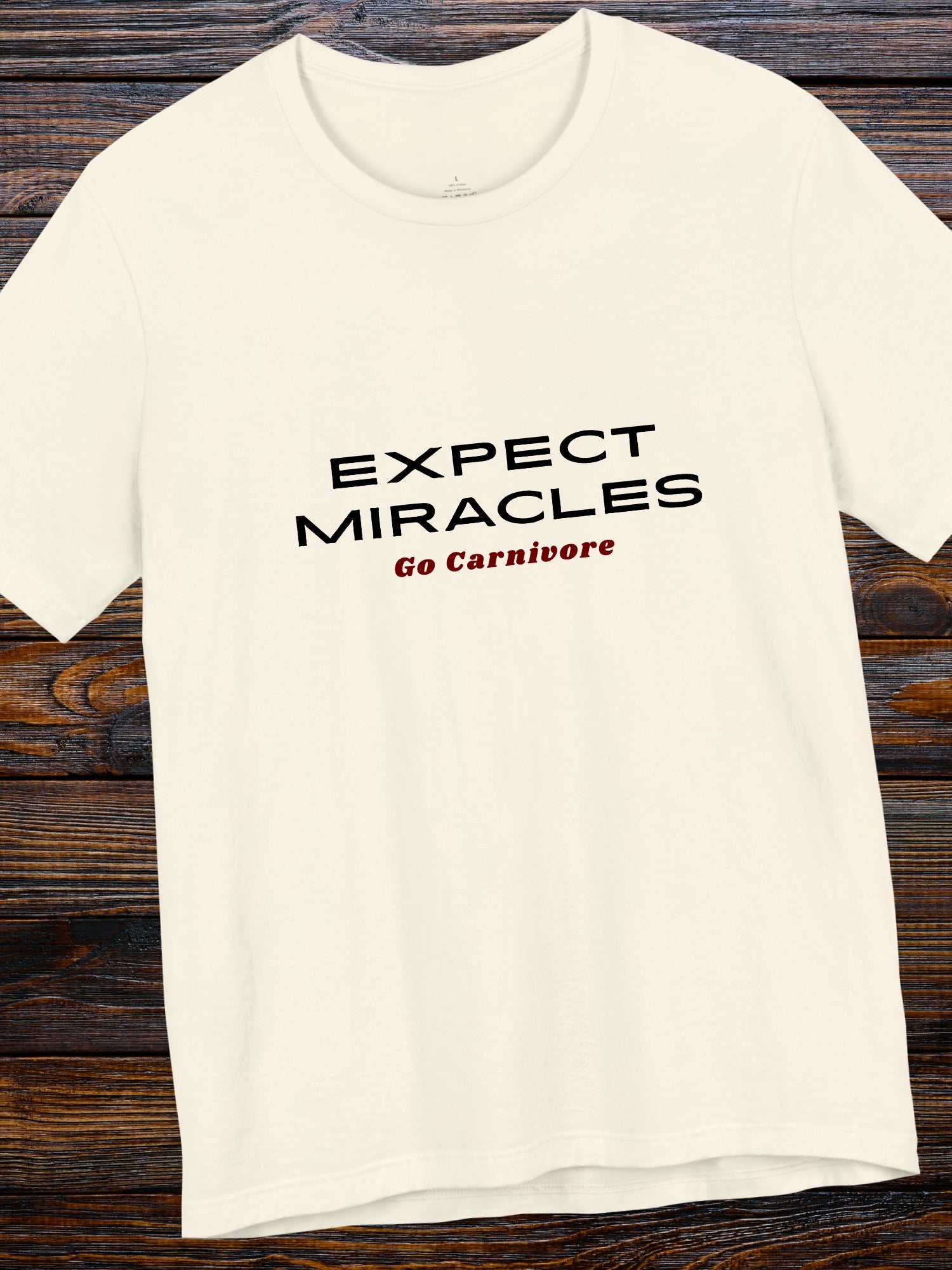 'EXPECT MIRACLES, Go Carnivore' Unisex T-Shirt, Carnivore Diet Apparel, Health and Wellness