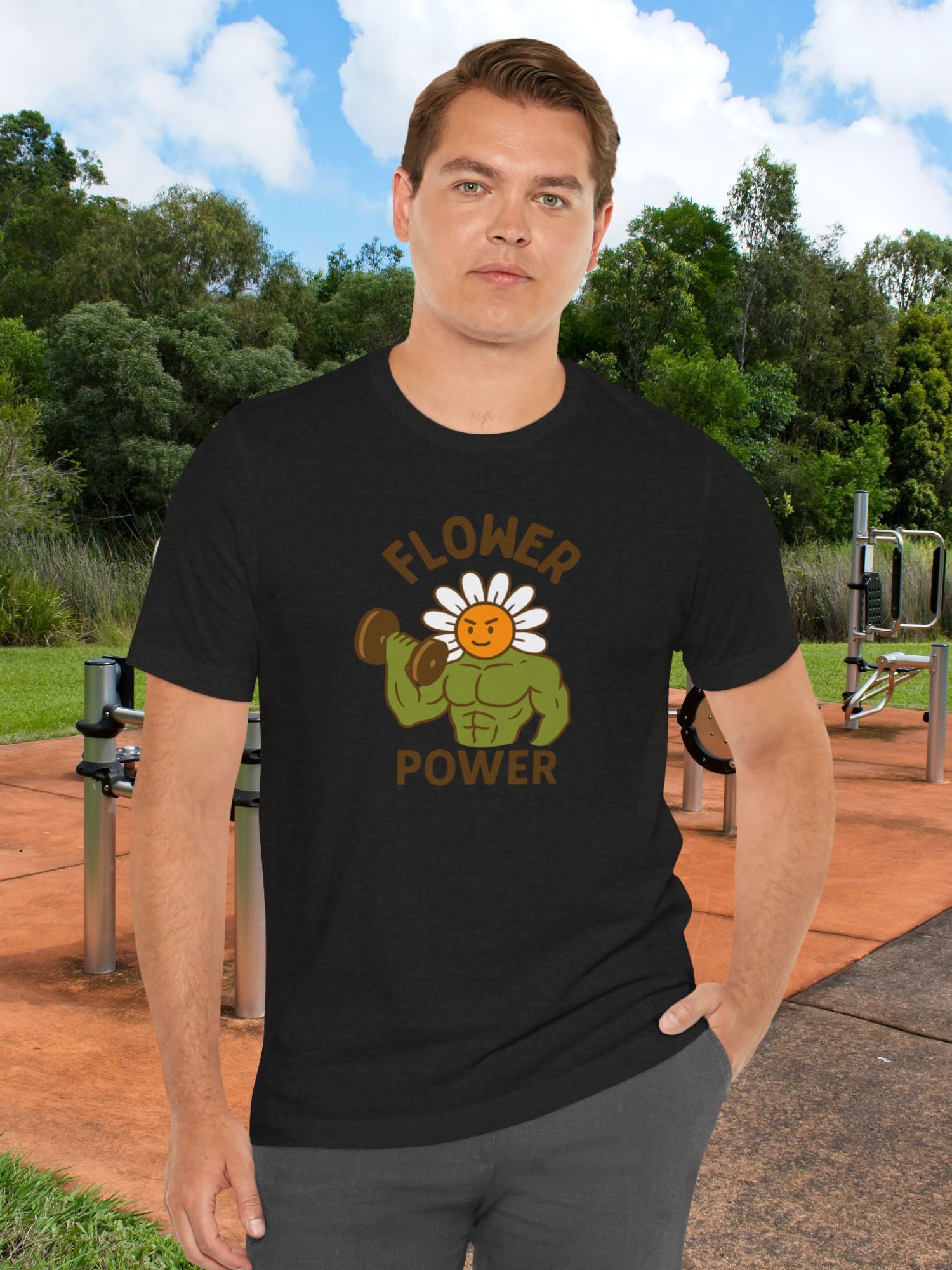 'Flower Power' Fitness Tee, Unisex T-Shirt for Gym Lovers, Motivational Workout Shirt, Gift for Fitness Enthusiasts, Fun Graphic Tee