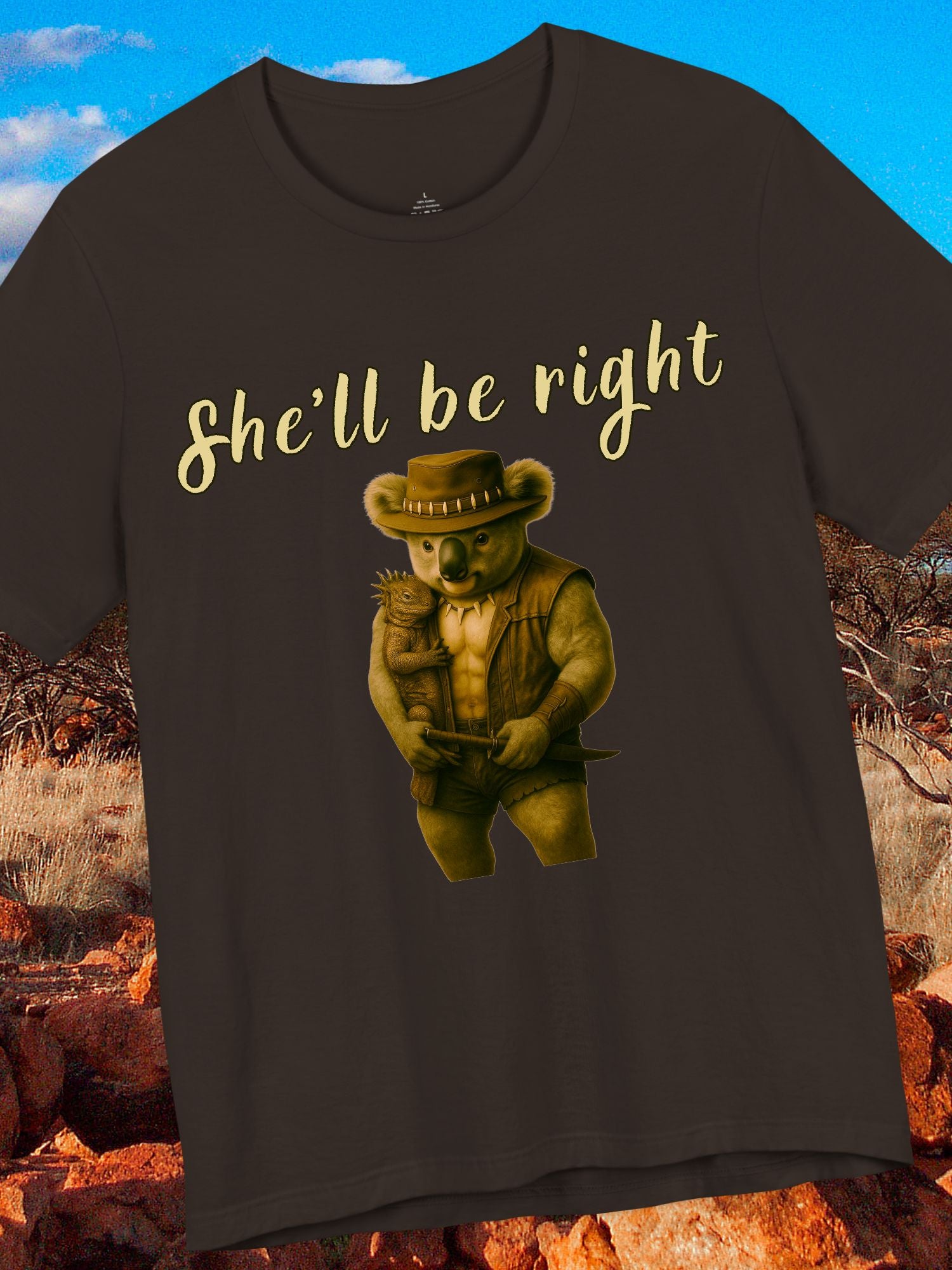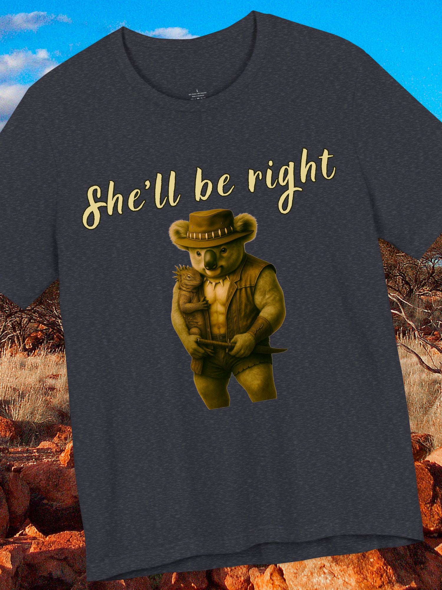 'She'll be right' Koala cuddling an iguana graphic - Unisex T-Shirt, Australian Gift