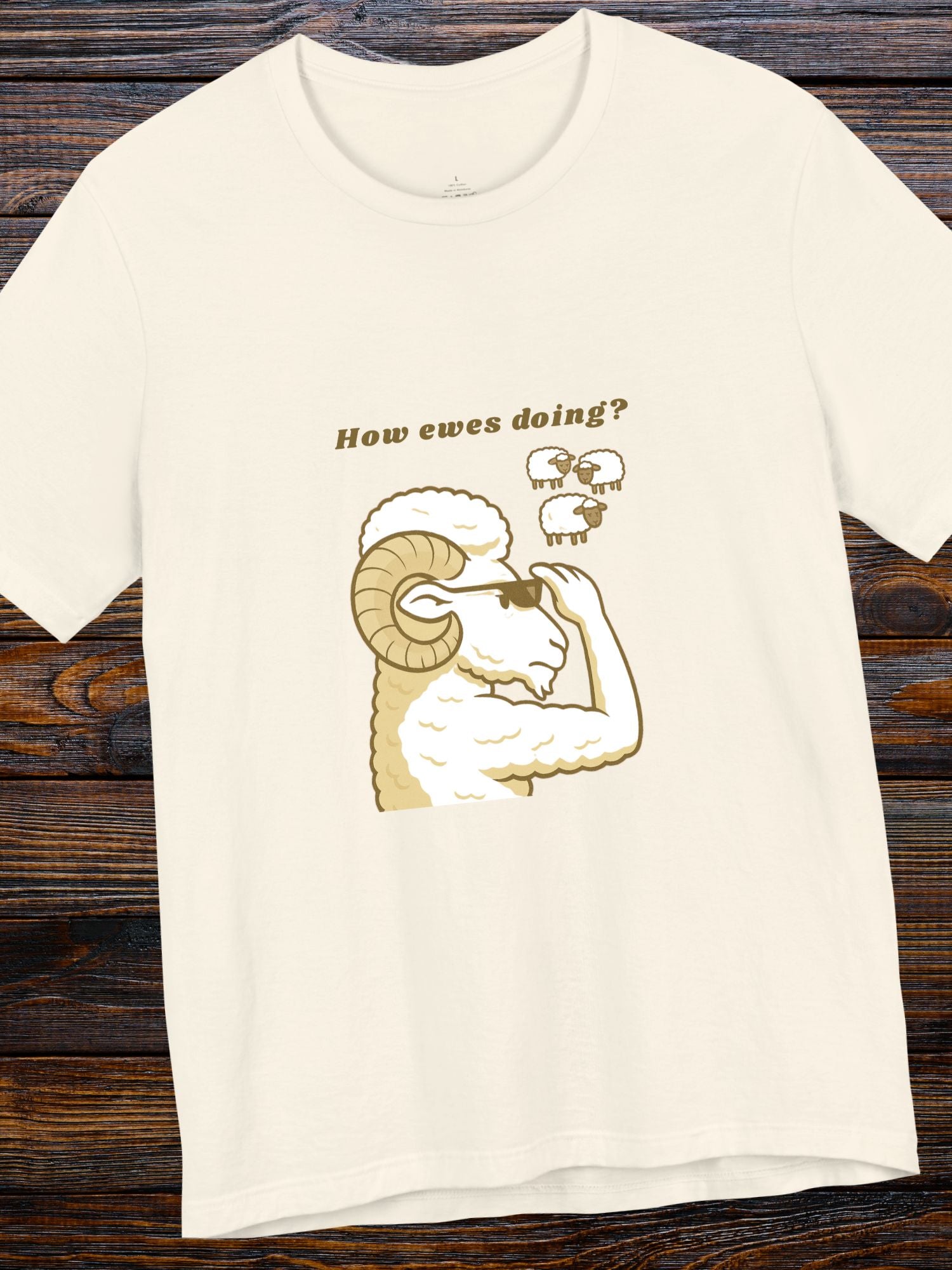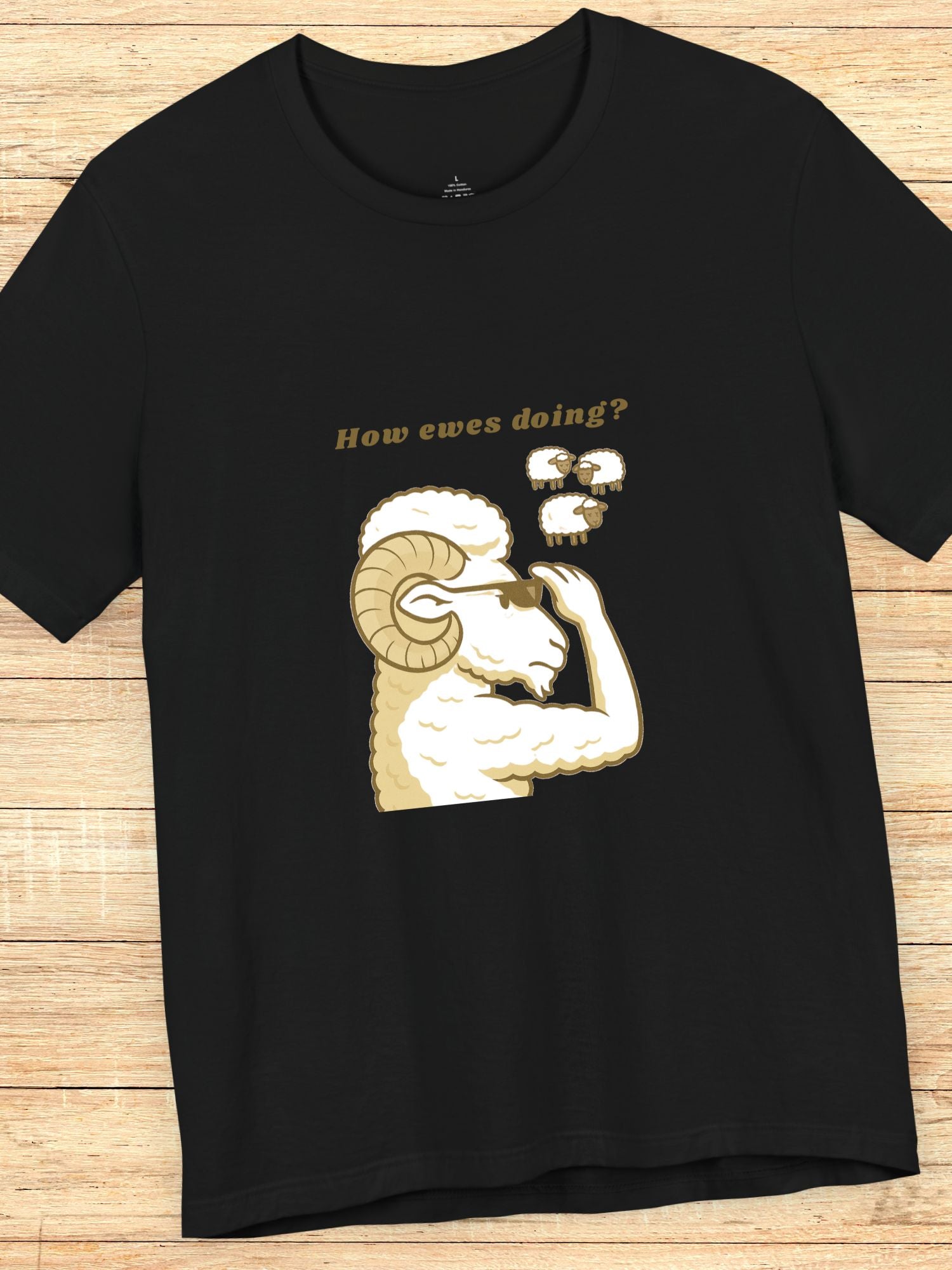 'How Ewes Doing?' Ram and Sheep Graphic Unisex T-Shirt, Gift funny sheep Tee, Casual Wear, Great for Parties