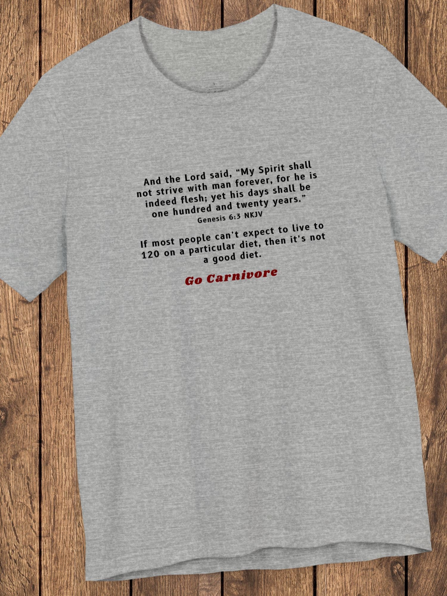 'Genesis 6:3, If Most People Can't Expect to Live 120 Years on a Particular Diet, Then it is Not a Good Diet' Unisex T-Shirt, Go Carnivore' Unisex T-Shirt, Health and Wellness Tee, Carnivore Diet