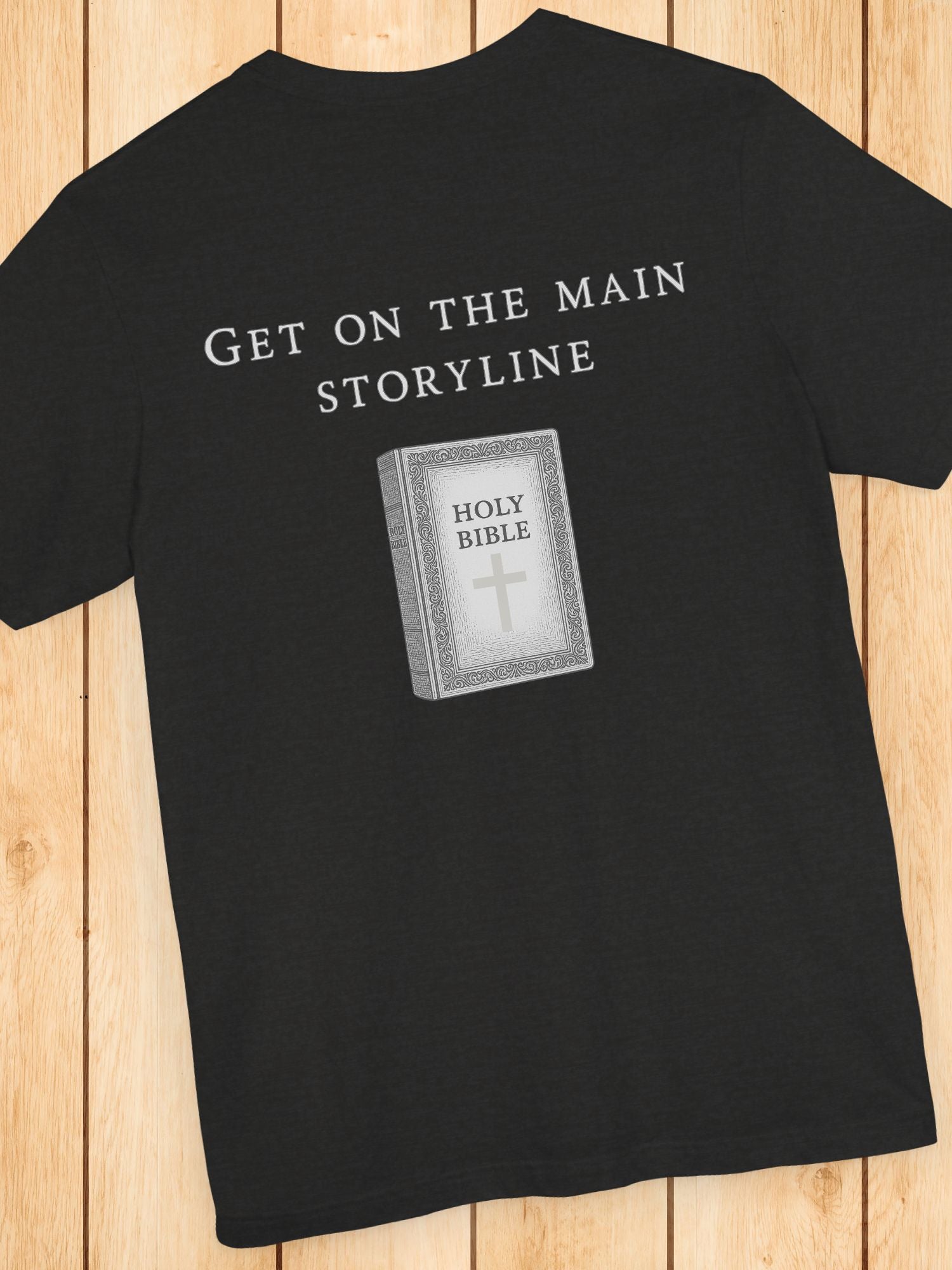 'Get On The Main Storyline' Bible Graphic Unisex T-Shirt. Printed on a quality Bella+Canvas 3001 T-Shirt.