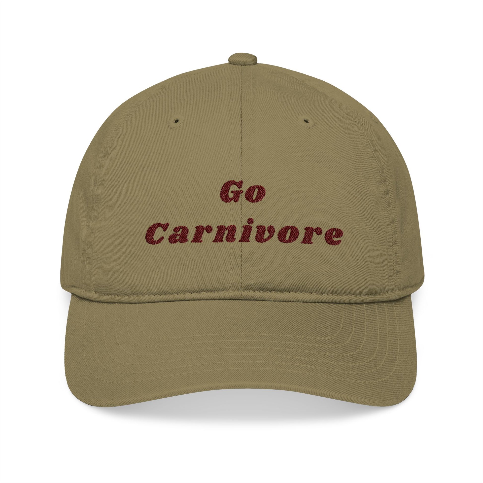 'Go Carnivore' Organic Baseball Cap, Carnivore Diet Apparel, Outdoor Sports Hat, Eco-Friendly Cap