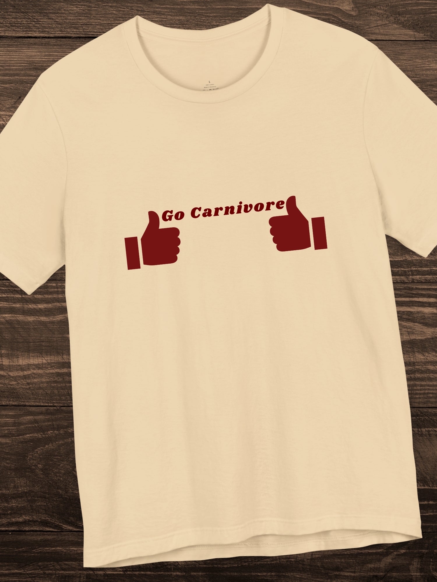 'Go Carnivore' Two Thumbs Up Graphic Unisex T-Shirt. Printed on a quality Bella+Canvas 3001 T-Shirt.
