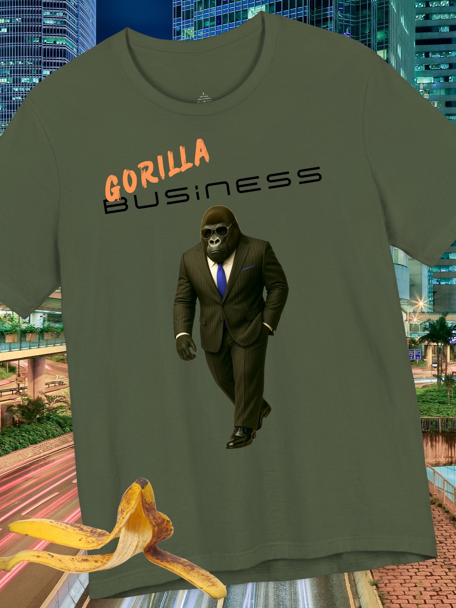 'Gorilla Business' with Graphic Unisex Cotton T-Shirt. Printed on a quality Bella+Canvas 3001 T-Shirt.