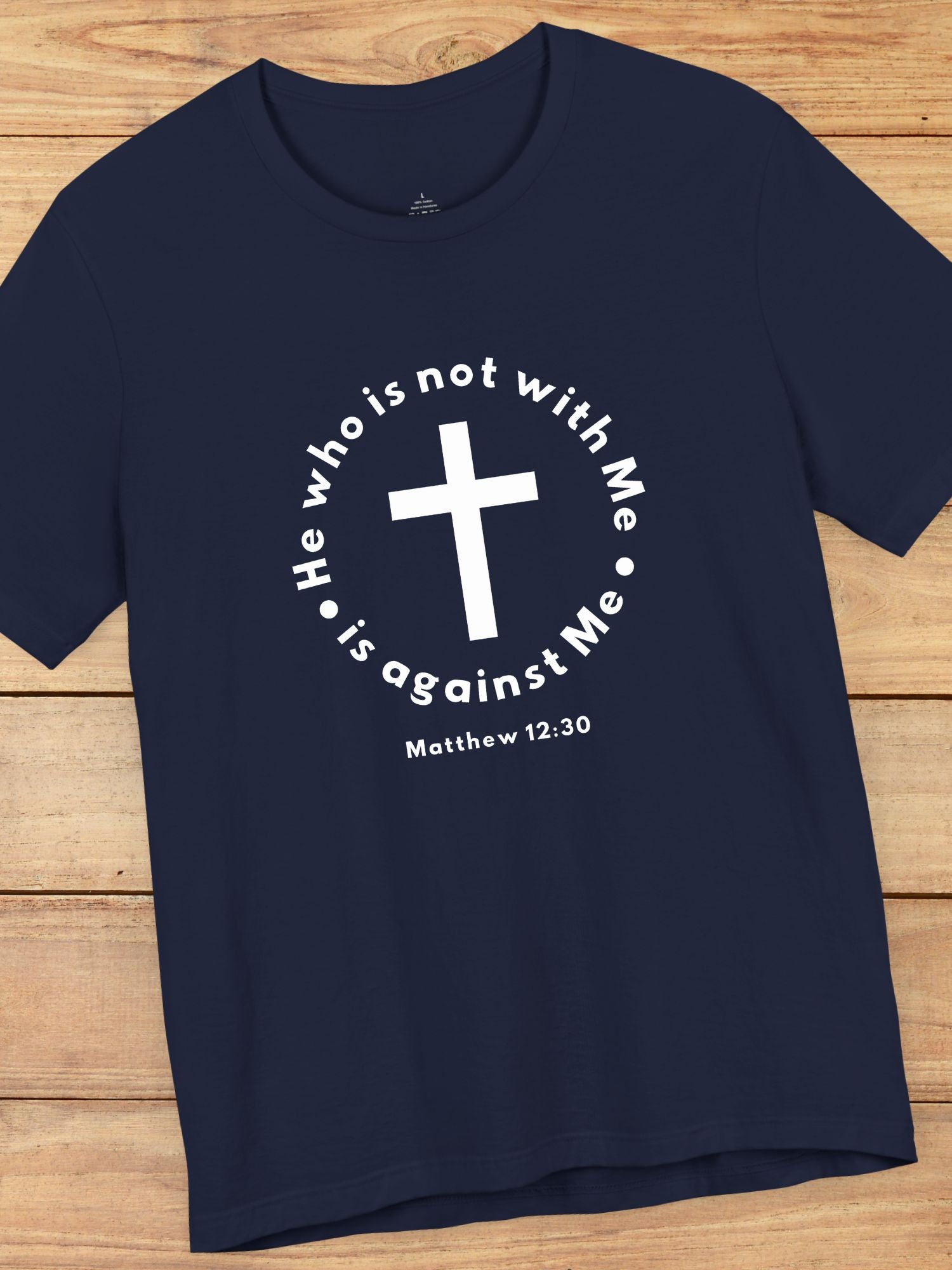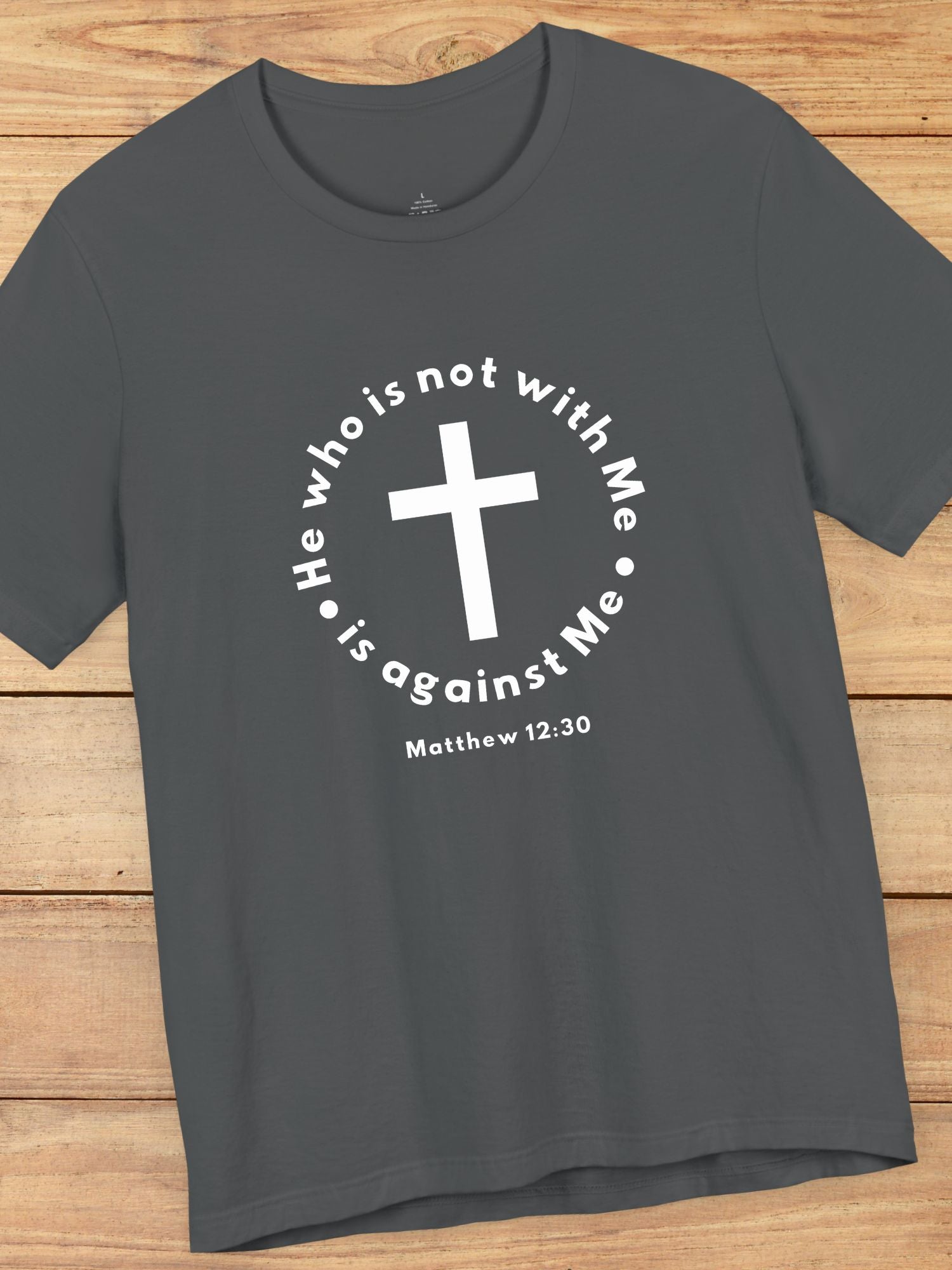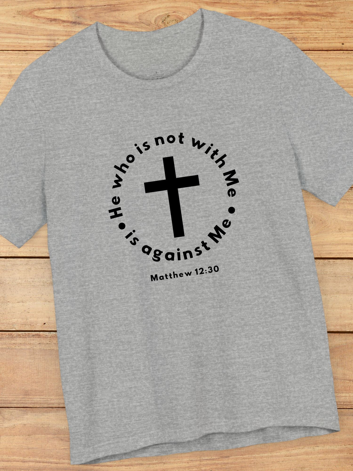 'He who is not with Me, is against Me' Cross Graphic Unisex T-Shirt, Christian Apparel, Jesus Tee, Jesus Message Shirt, Bible Verse Apparel, Everyday Casual Wear