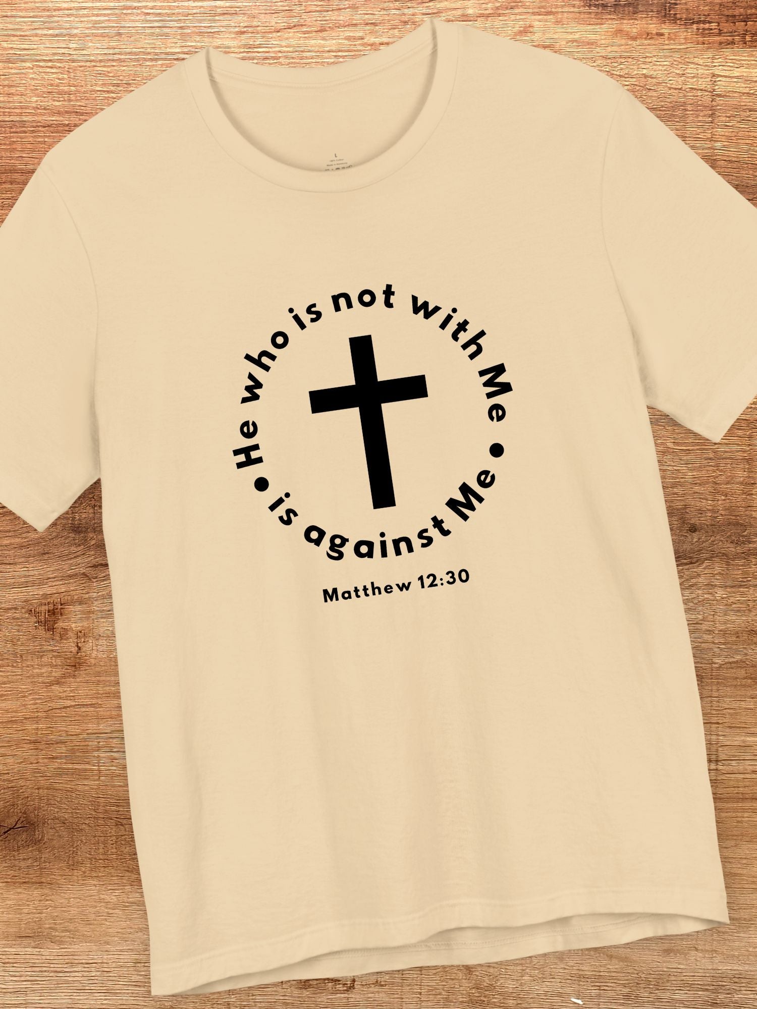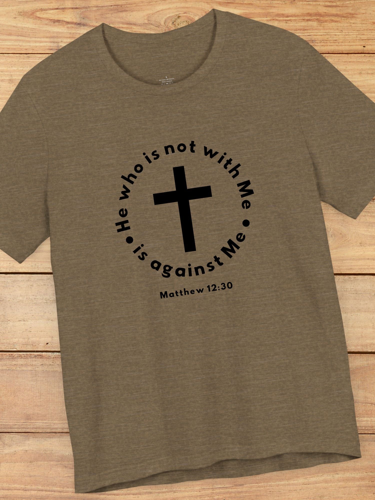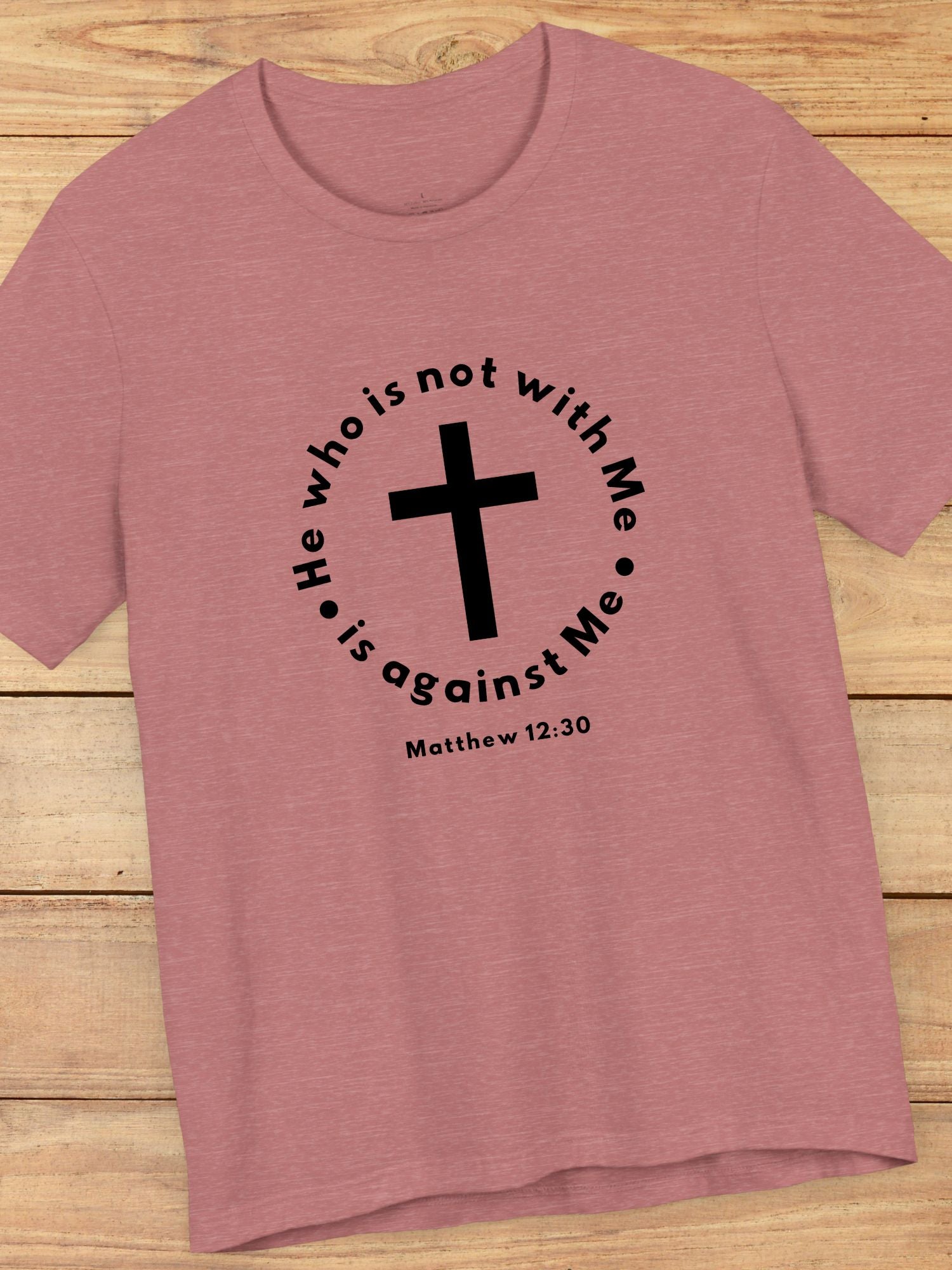 'He who is not with Me, is against Me' Cross Graphic Unisex T-Shirt, Christian Apparel, Jesus Tee, Jesus Message Shirt, Bible Verse Apparel, Everyday Casual Wear
