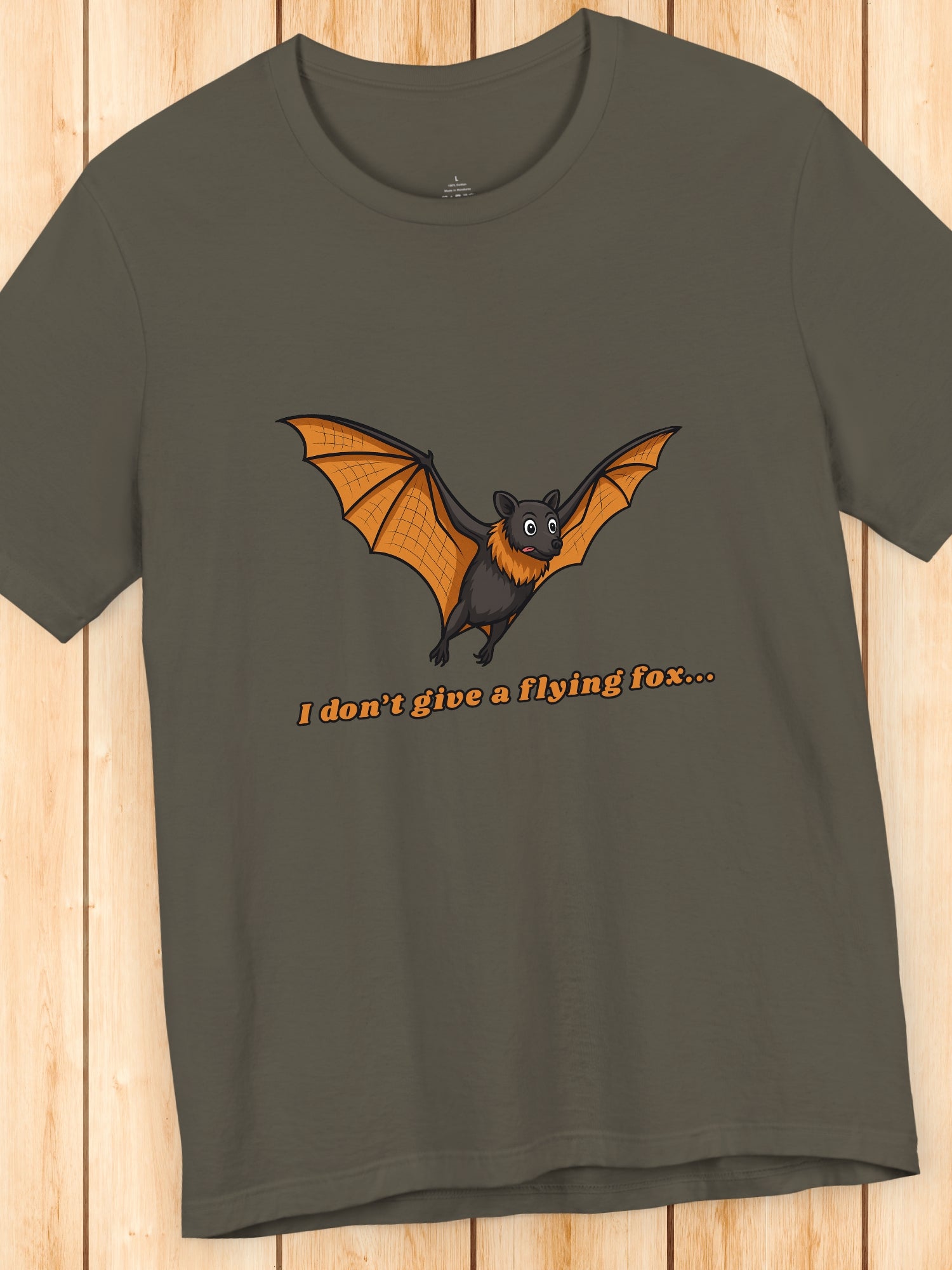 'I don't give a flying fox...' Bat Graphic Unisex T-Shirt. Printed on a quality Bella+Canvas 3001 T-Shirt.