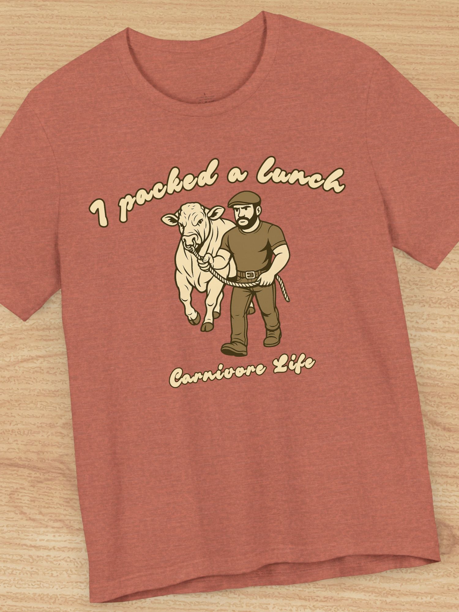'I Packed a Lunch' Carnivore Diet Graphic Unisex T-Shirt. Printed on a quality Bella+Canvas 3001 T-Shirt.