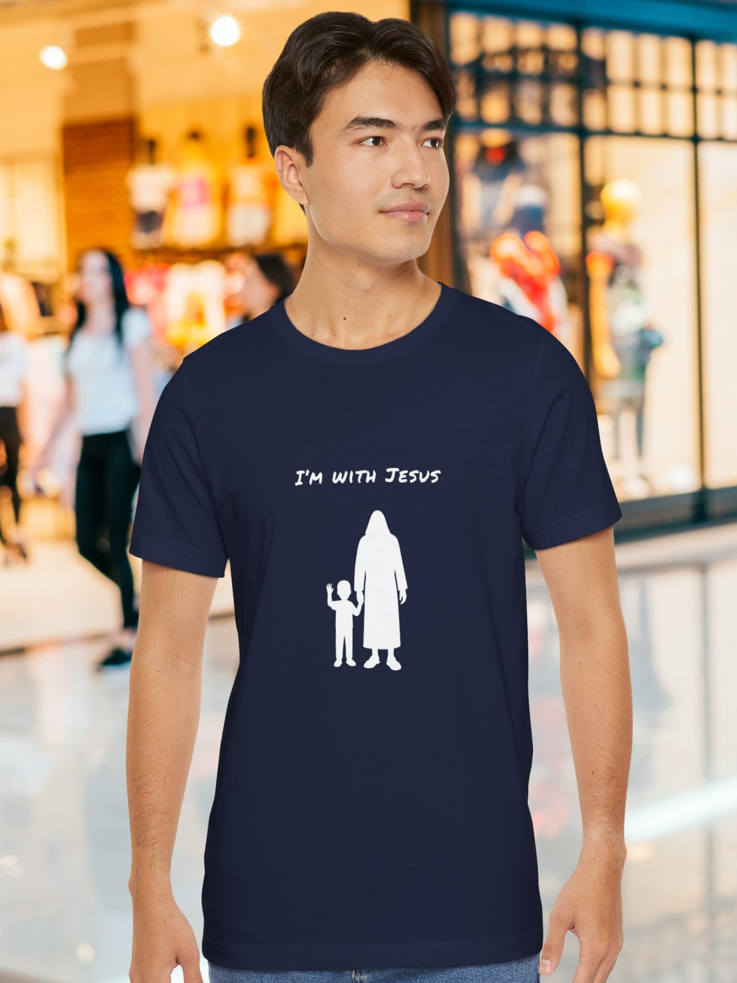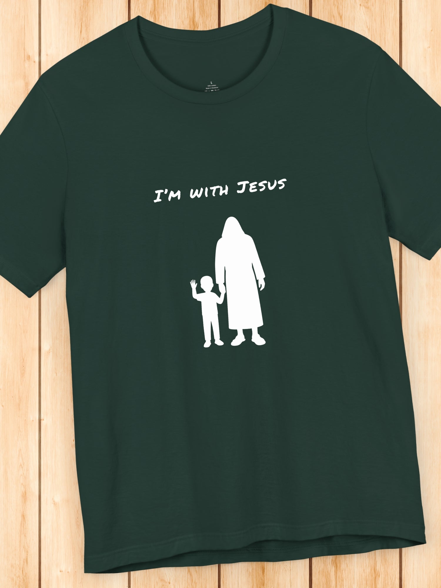 'I'm with Jesus' (boy) Unisex T-Shirt. Printed on a quality Bella+Canvas 3001 T-Shirt.