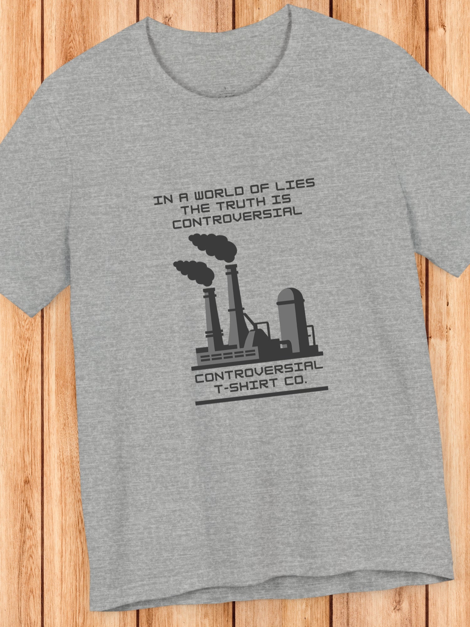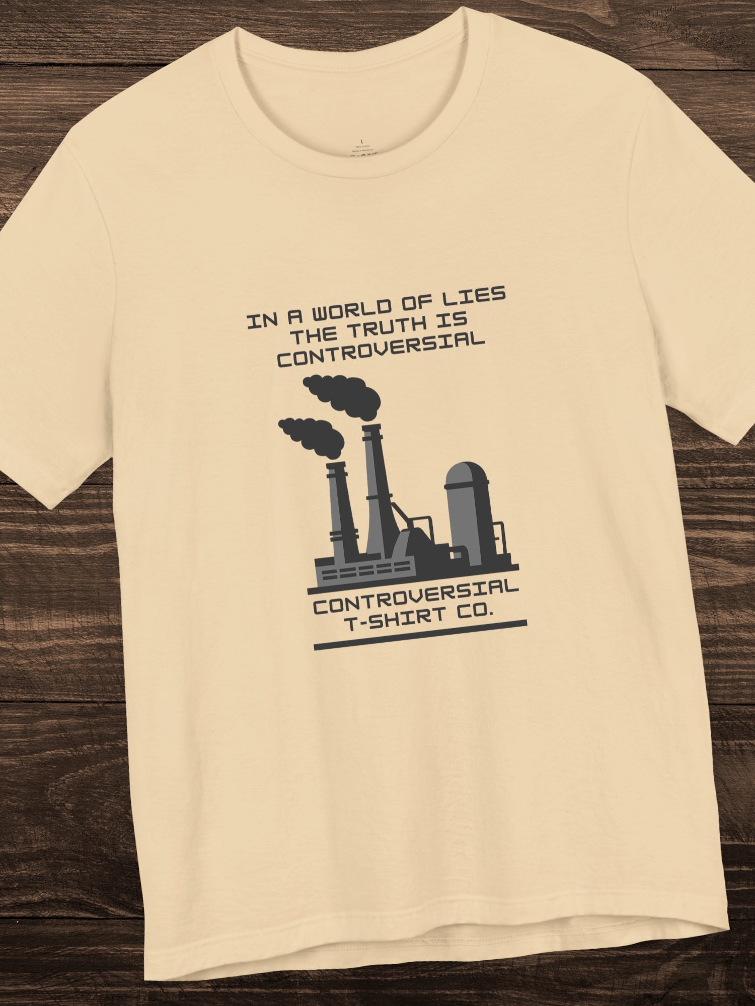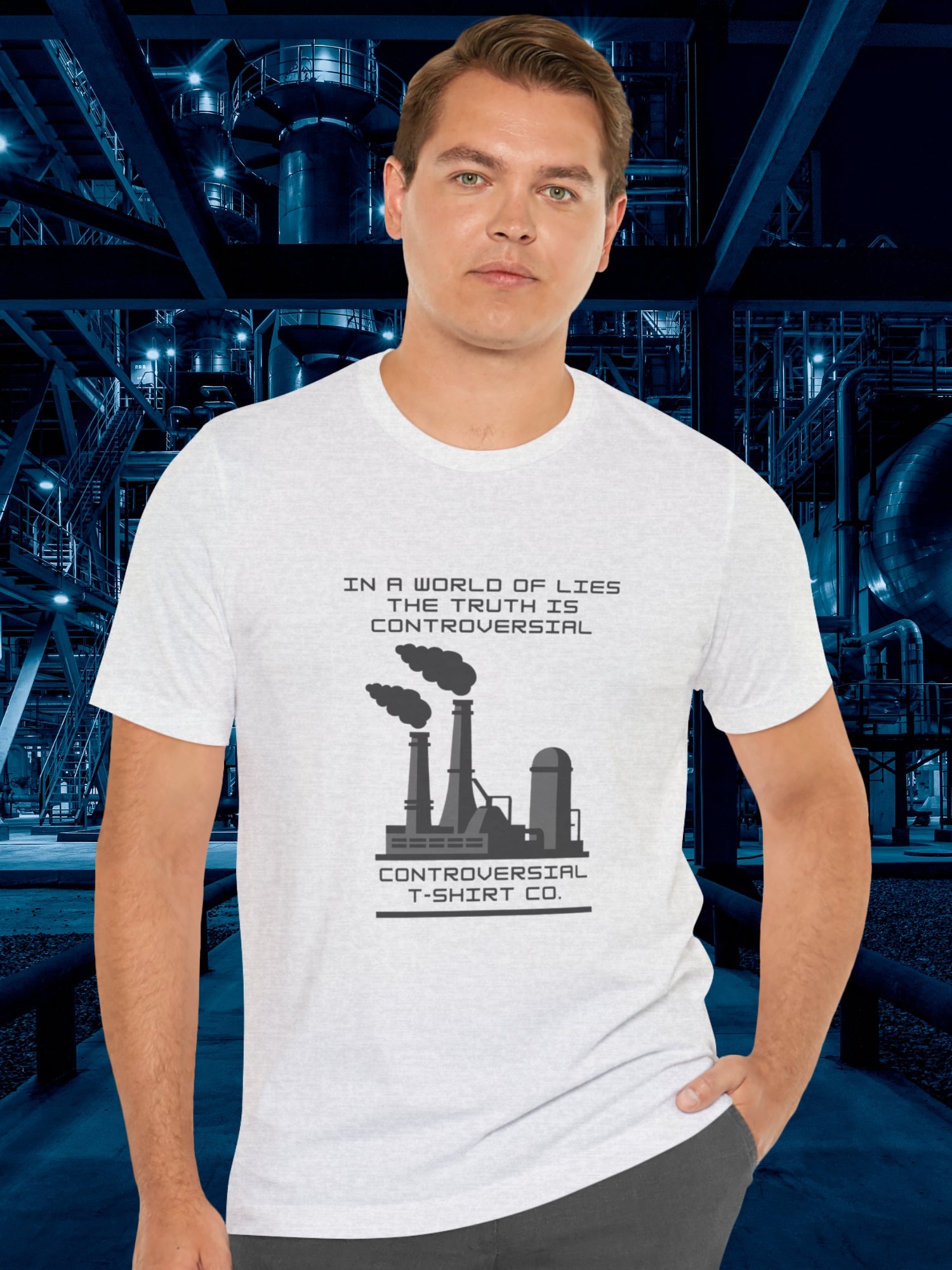 'In a world of lies the Truth is controversial, Controversial T-Shirt Co.' Factory Graphic Unisex T-Shirt. Printed on a quality Bella+Canvas 3001 T-Shirt.