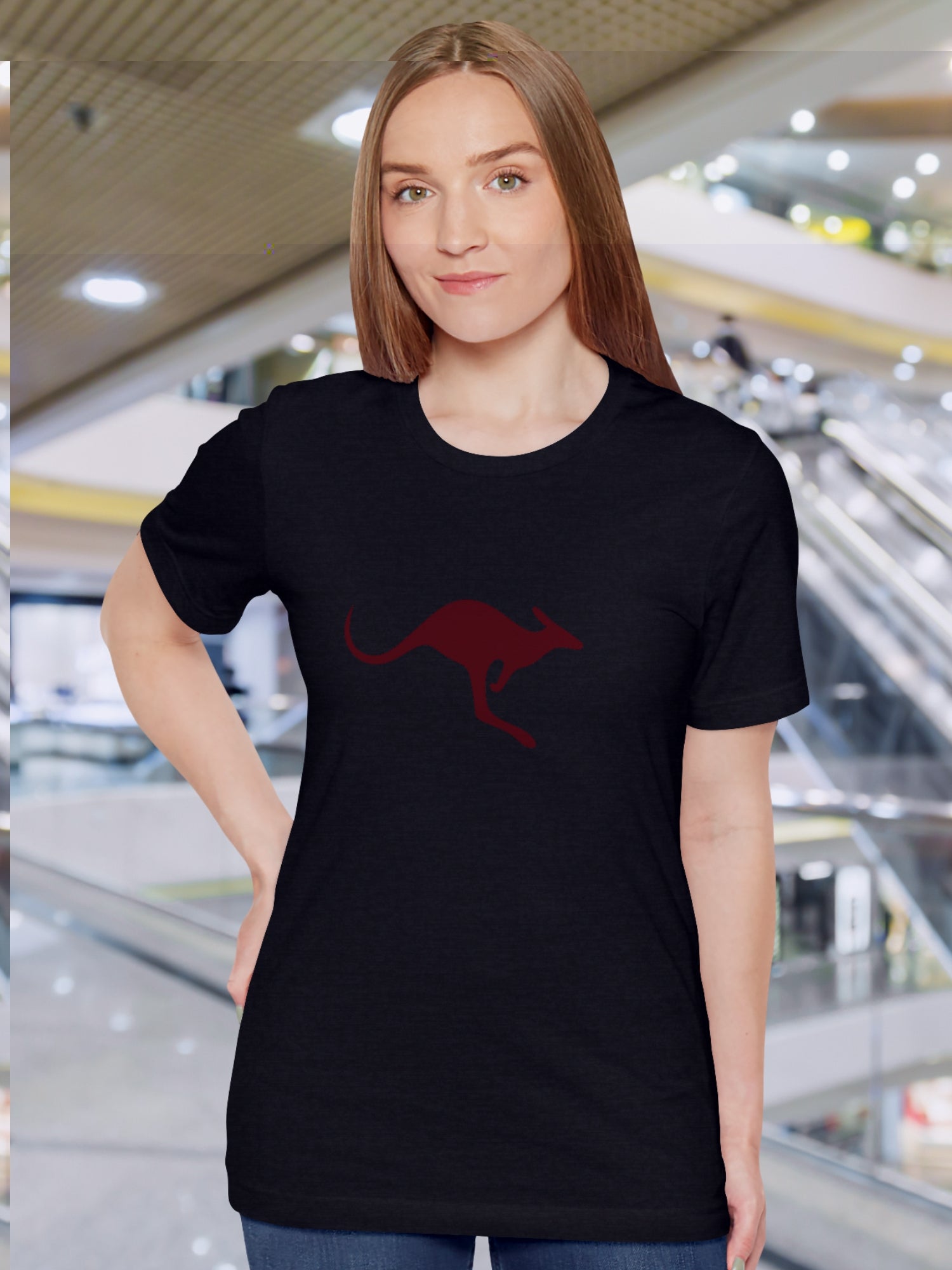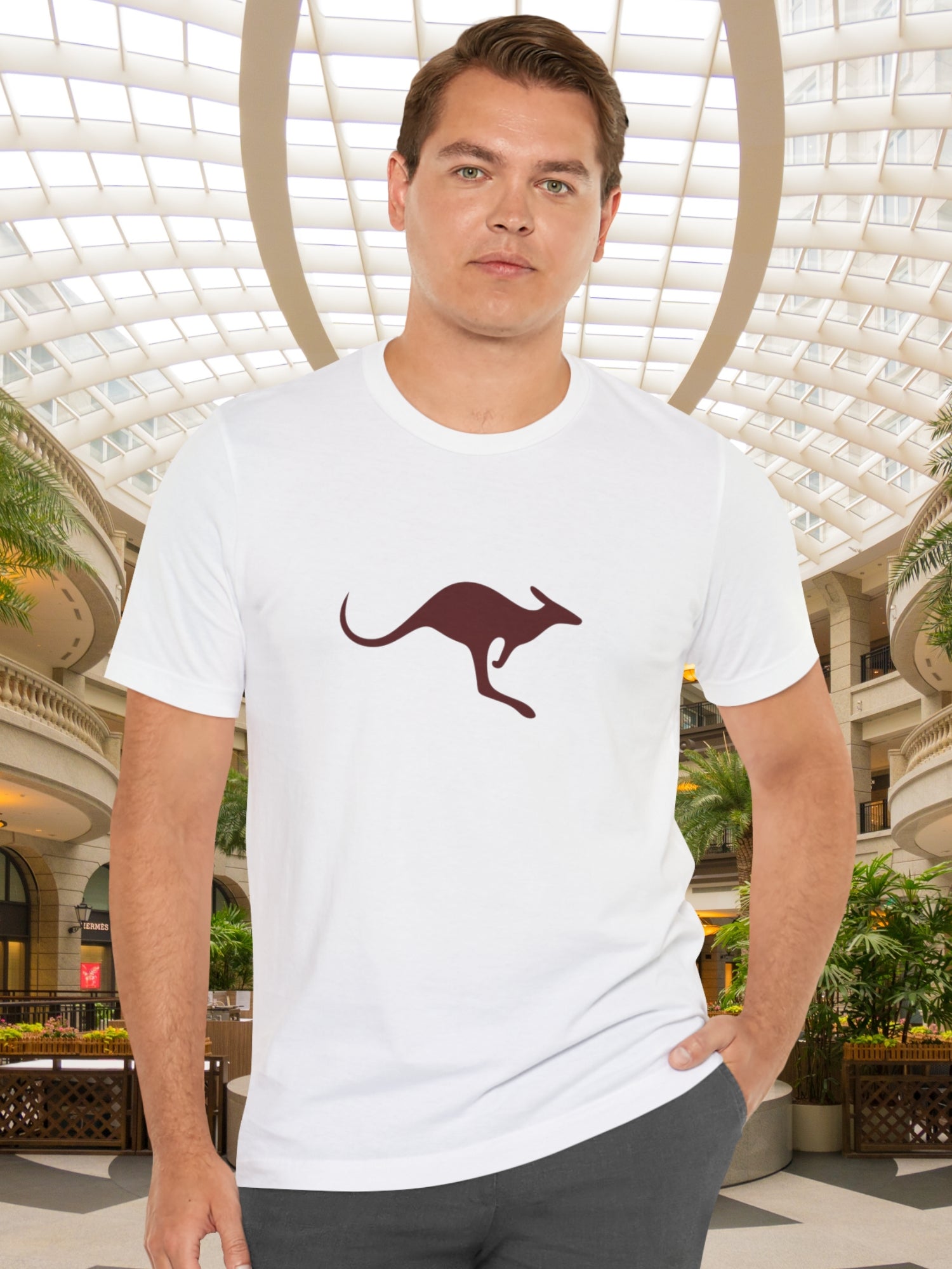 Kangaroo Graphic T-Shirt. Introducing the unisex jersey short sleeve tee, a perfect blend of comfort and style. This tee is crafted from 100% Airlume combed and ring-spun cotton, offering a lightweight feel ideal for both active days and relaxing moments. The breathable fabric ensures all-day comfort, making it an excellent addition to any casual or semi-formal wardrobe. Its classic crew neckline and retail fit allow for effortless accessorizing, suitable for any occasion. This tee resonates with those who appreciate quality, whether you are out shopping or at the gym. Celebrate personal milestones, casual get-togethers, or leisurely weekends in this versatile piece. Perfect for gifting during holidays, birthdays, or just to indulge yourself! Printed on a quality Bella+Canvas 3001 T-Shirt.