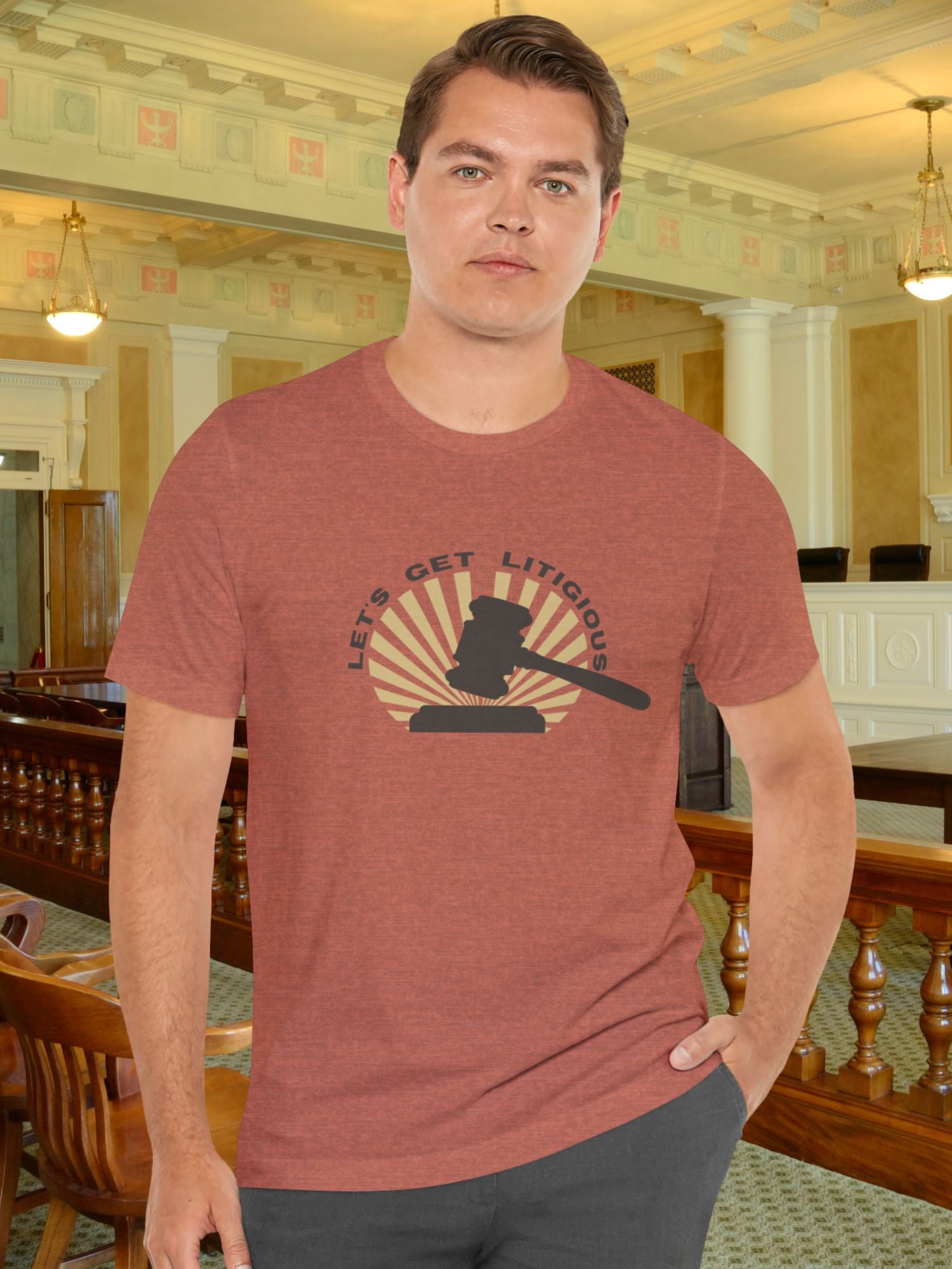 'Let's Get Litigious' Gavel Graphic Unisex T-Shirt, Lawyer Humor Tee, Legal Student Gift, Justice Apparel