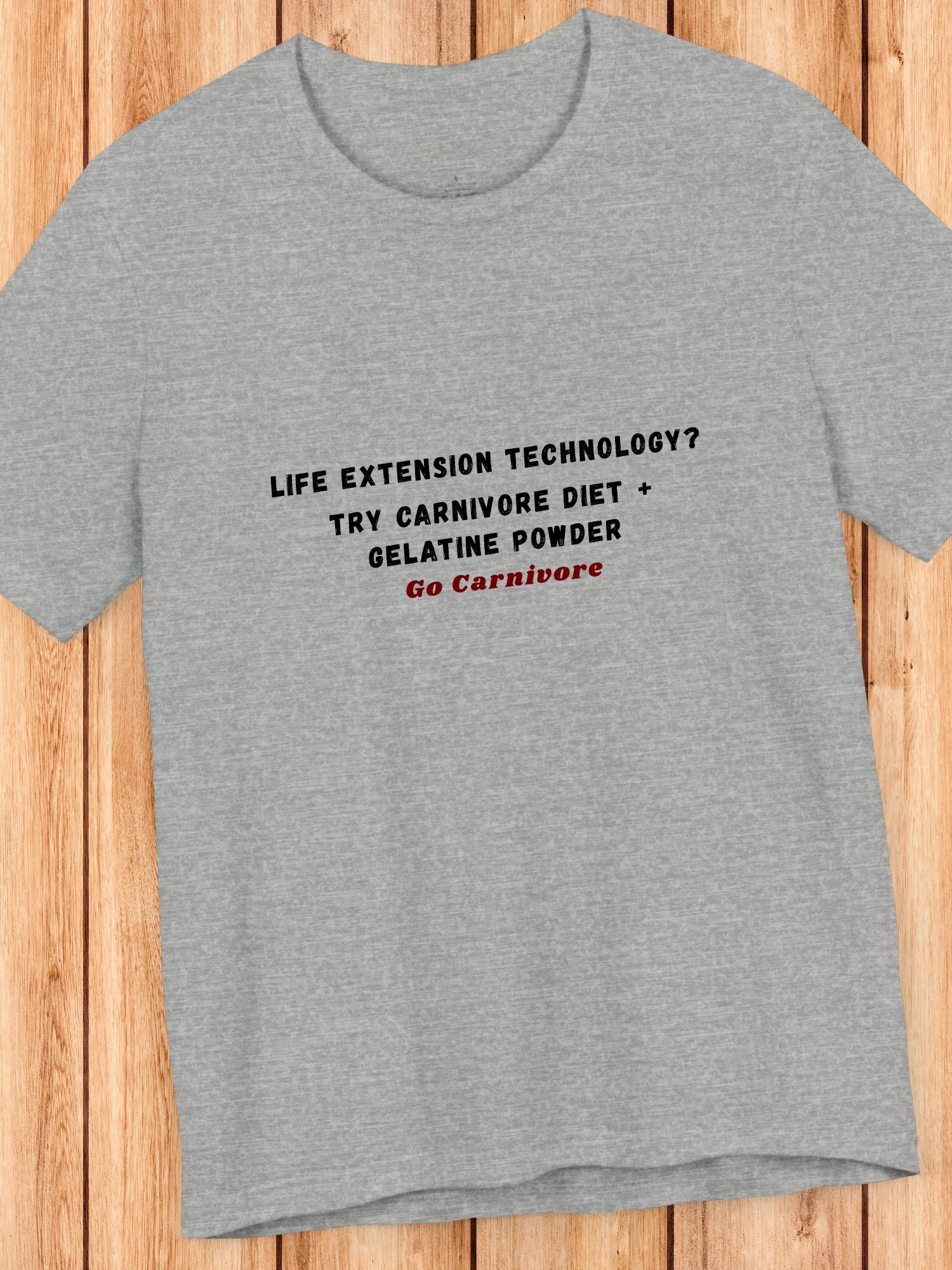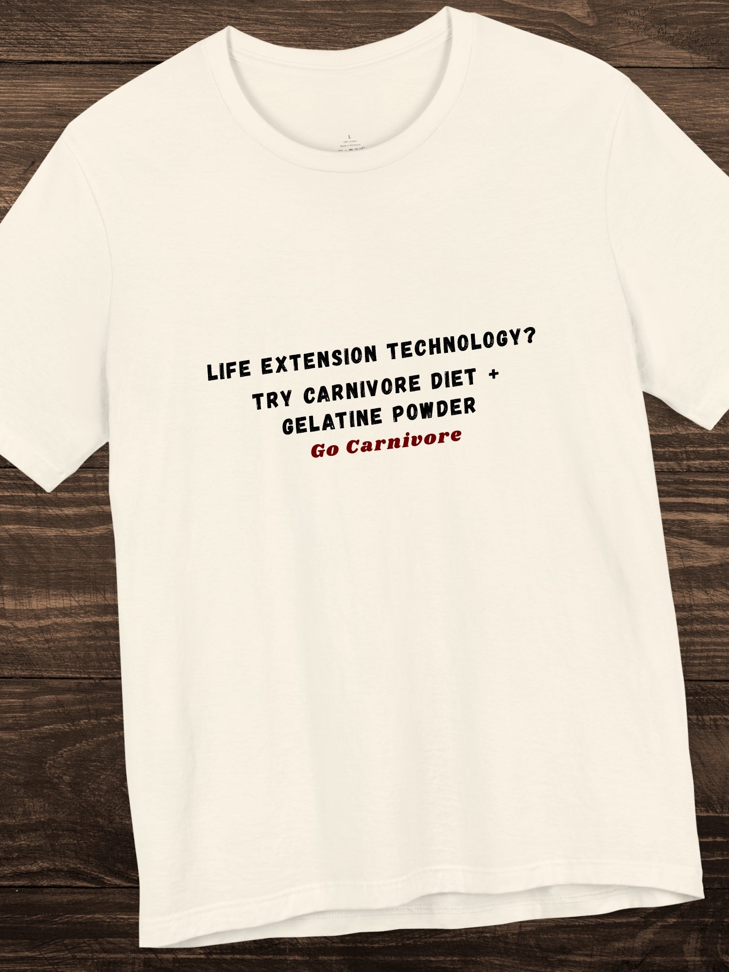'Life extension technology? Try carnivore diet + Gelatine powder, Go Carnivore' Unisex T-Shirt, Carnivore Diet, Health and Wellness