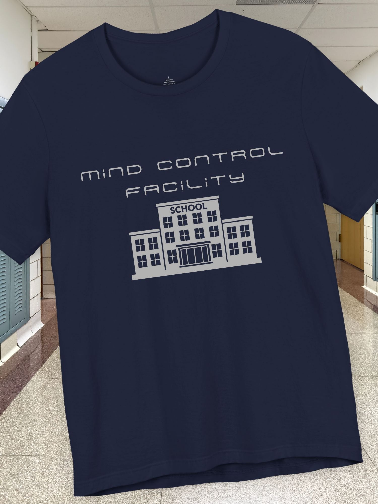 'Mind Control Facility' Graphic Unisex T-Shirt. Designed for anyone who has done time in school. Printed on a quality Bella+Canvas 3001 T-Shirt.