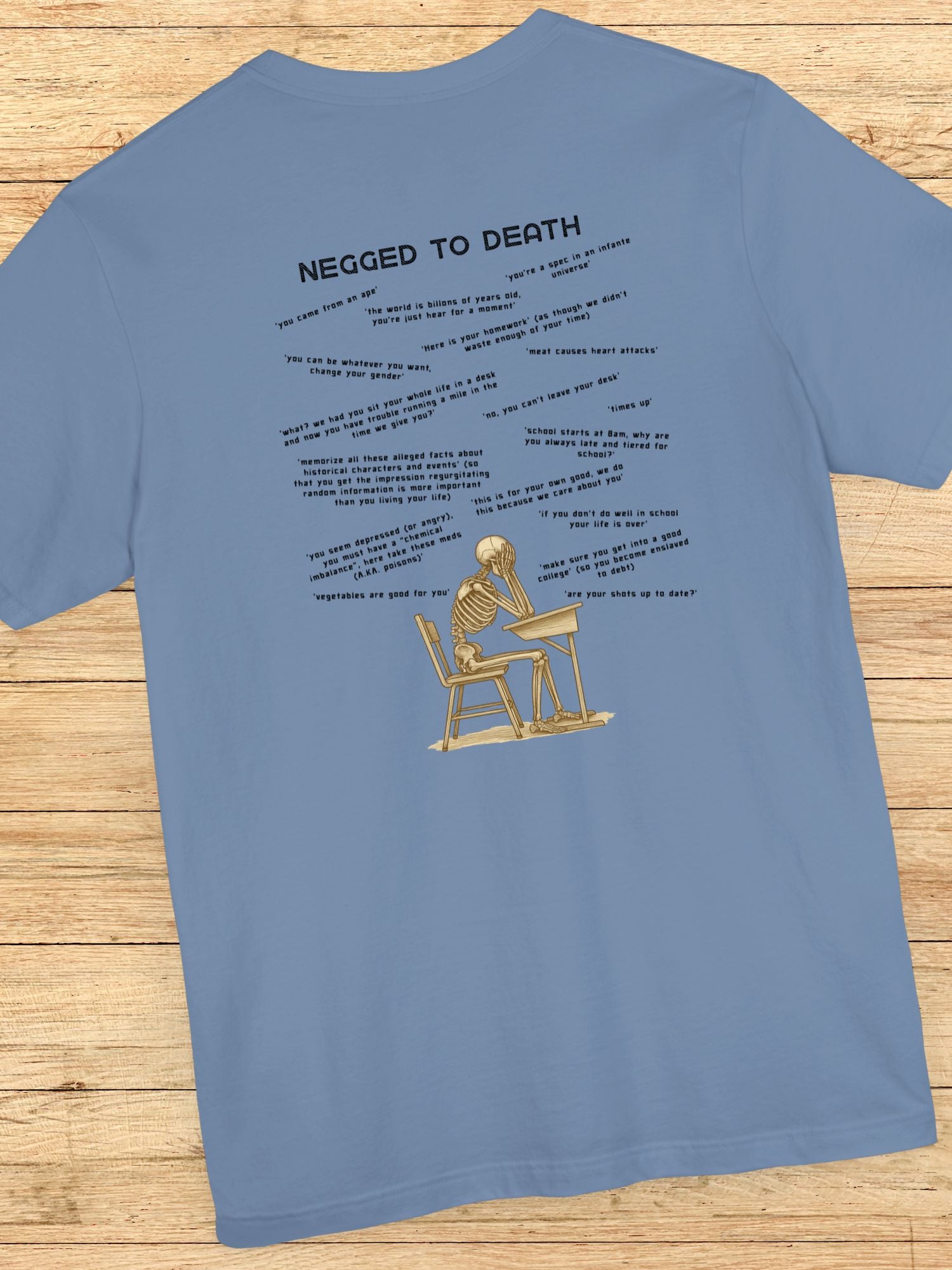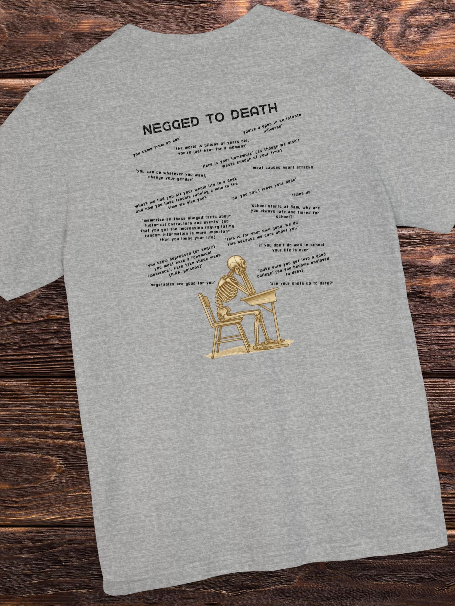 'Negged to Death' Skeleton Student Graphic Unisex T-Shirt, Anti-School Apparel
