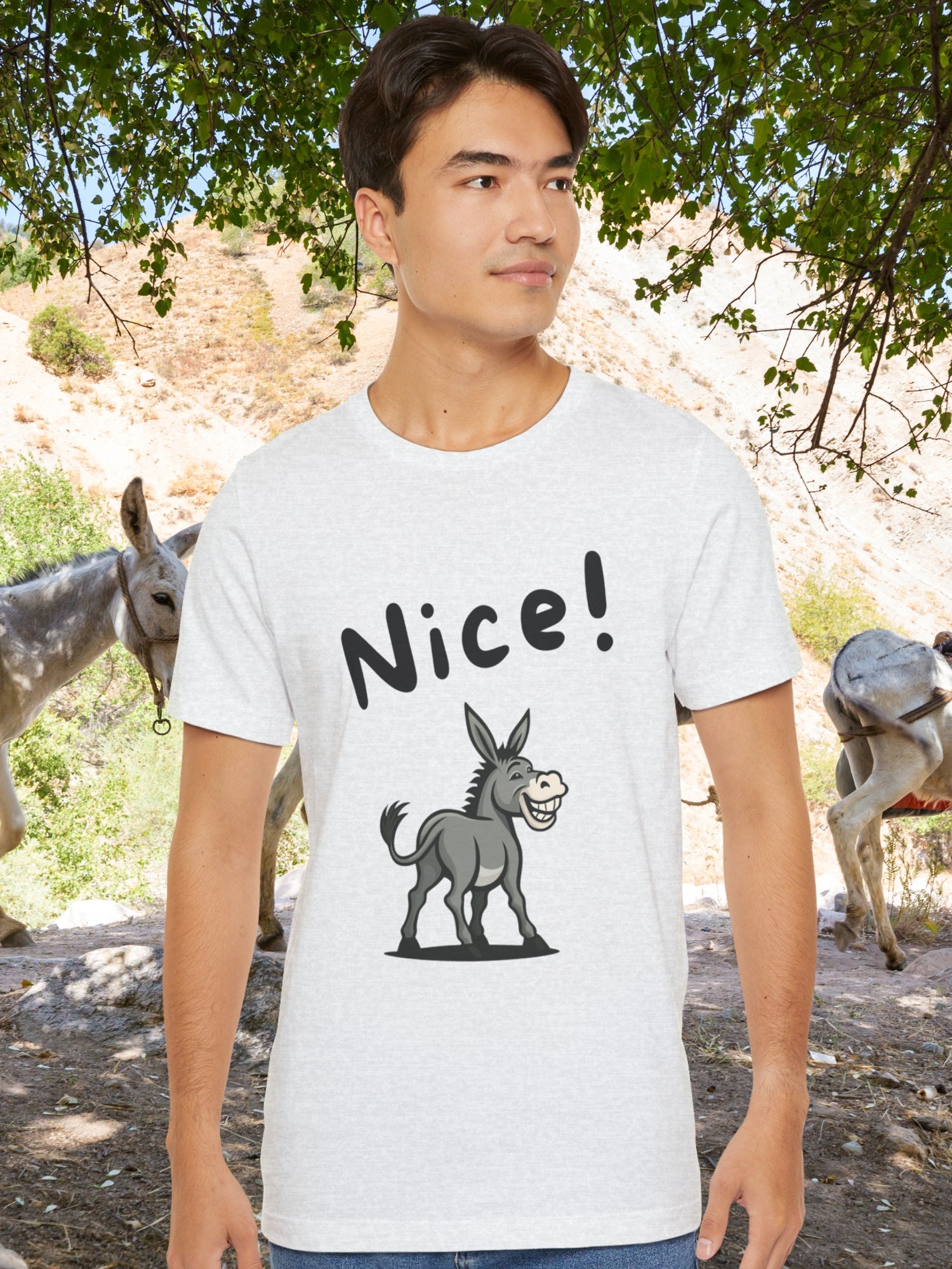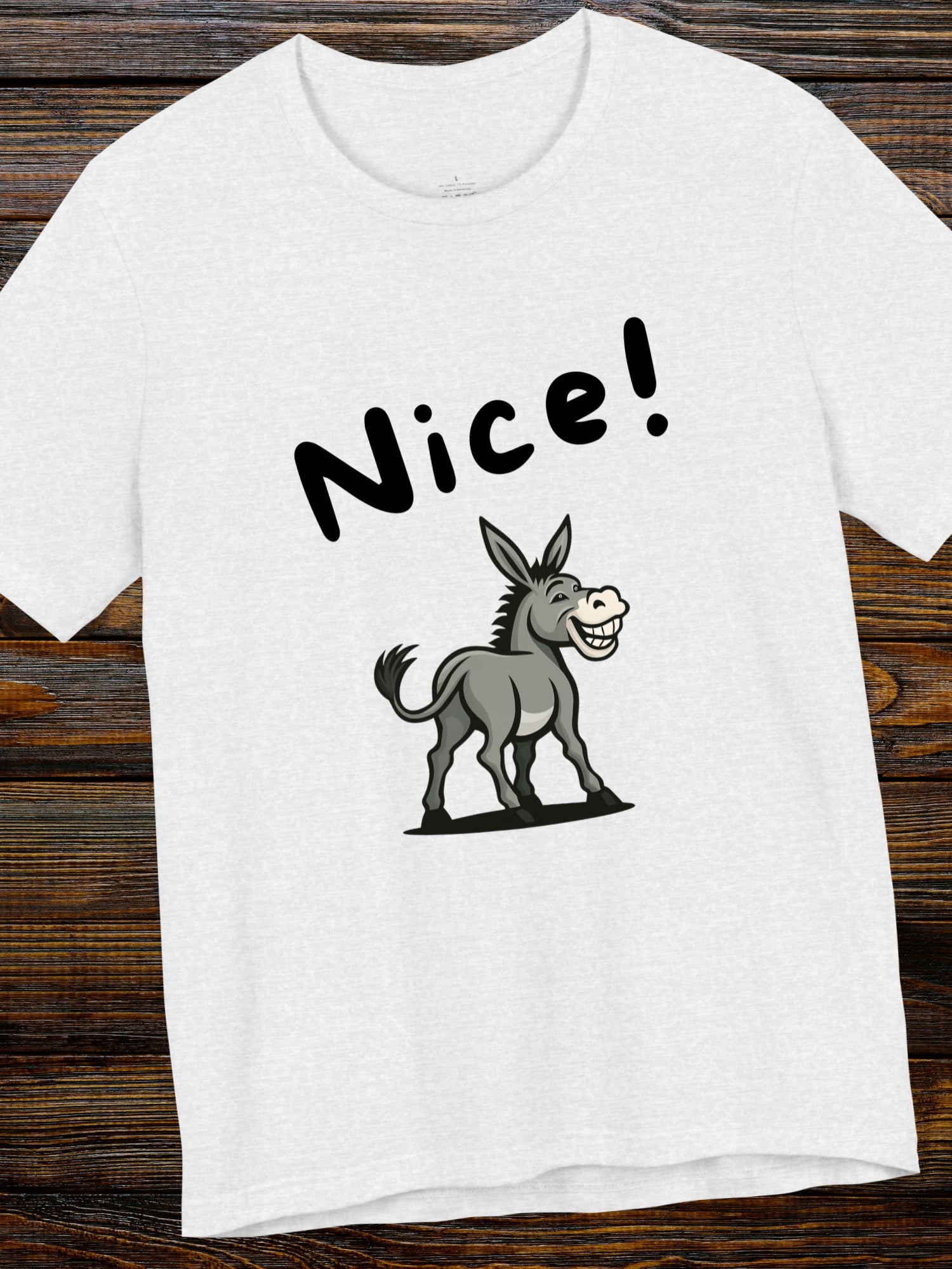 'Nice!' Donkey Graphic Unisex T-Shirt. Printed on a quality Bella+Canvas 3001 T-Shirt.