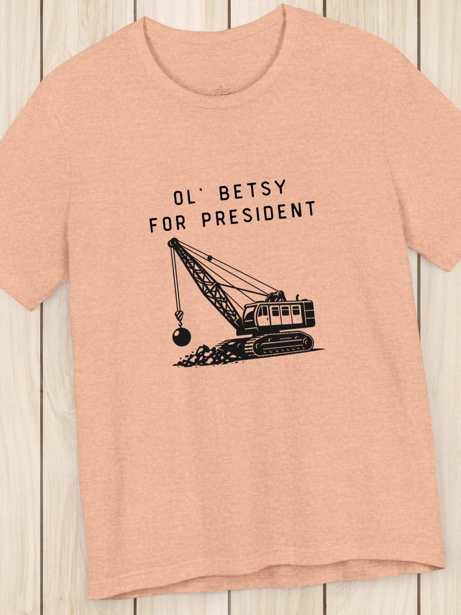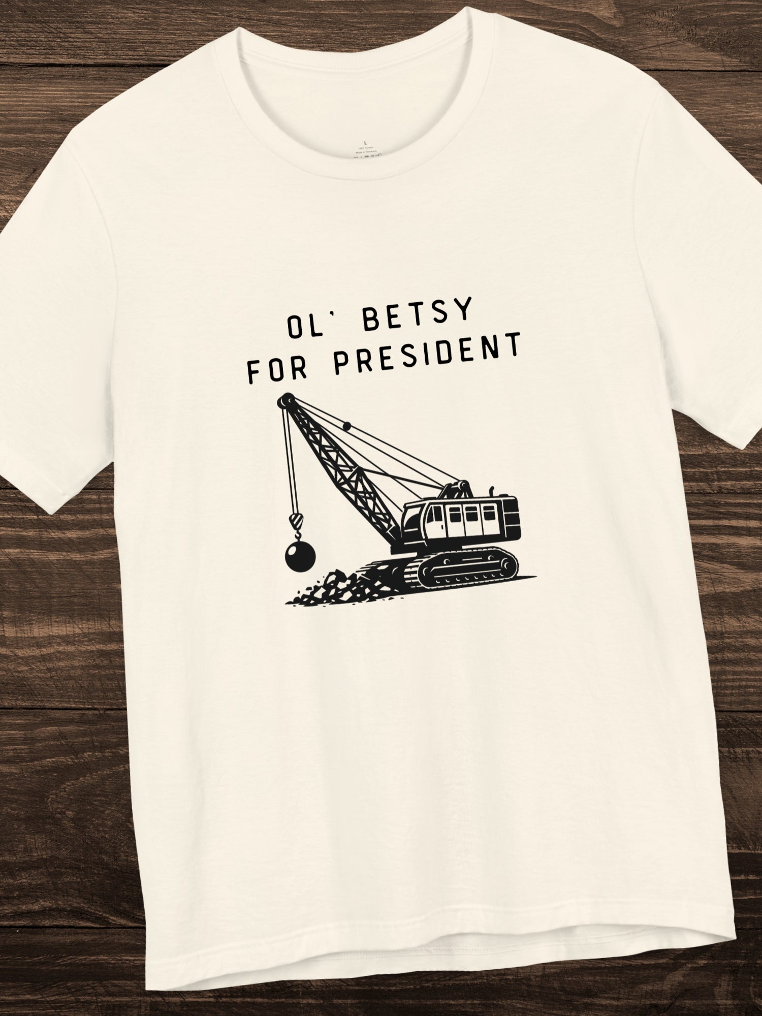 'Ol' Betsy for President' Wrecking Ball Machine Graphic Unisex T-Shirt. Printed on a quality Bella+Canvas 3001 T-Shirt.