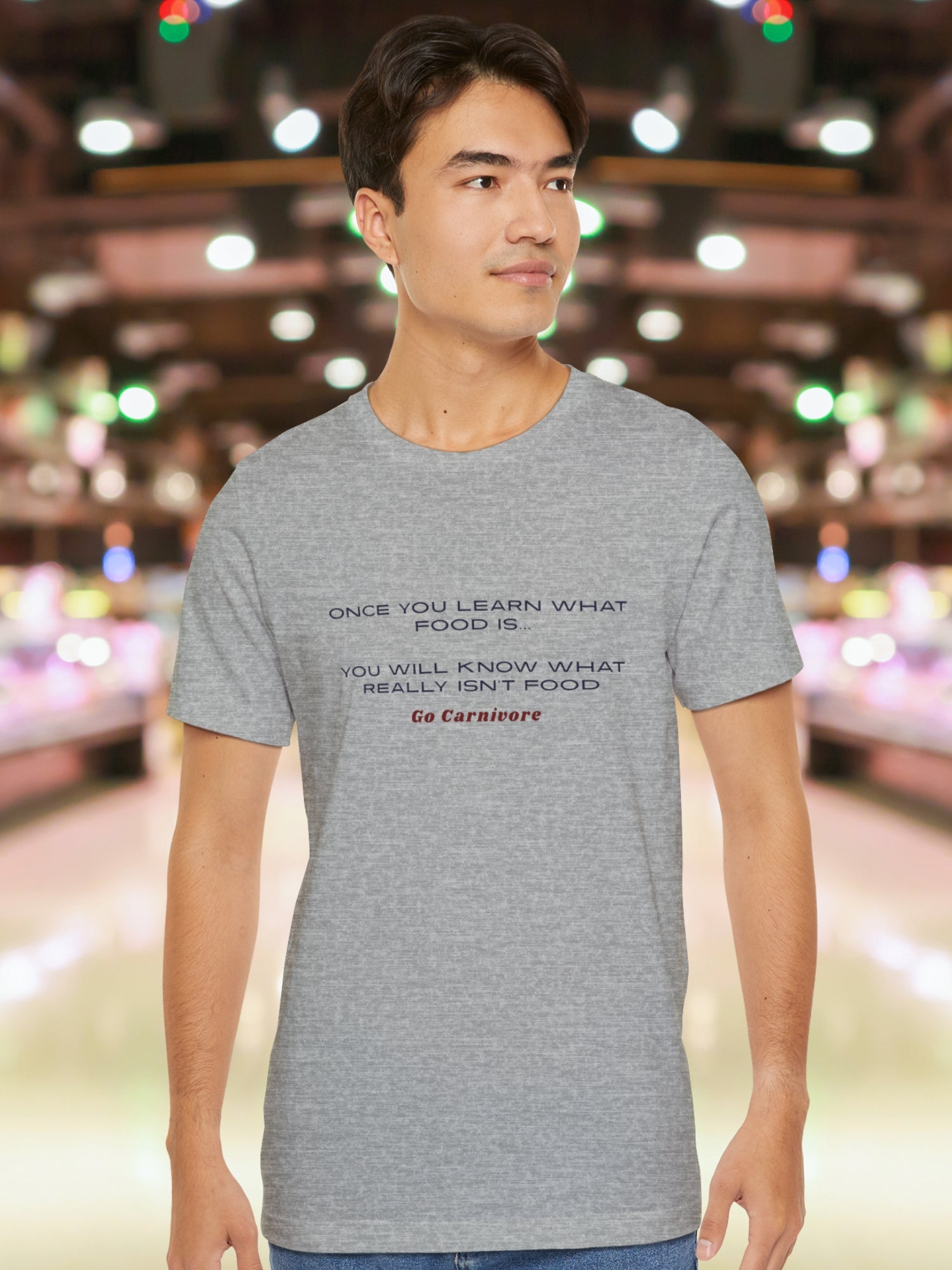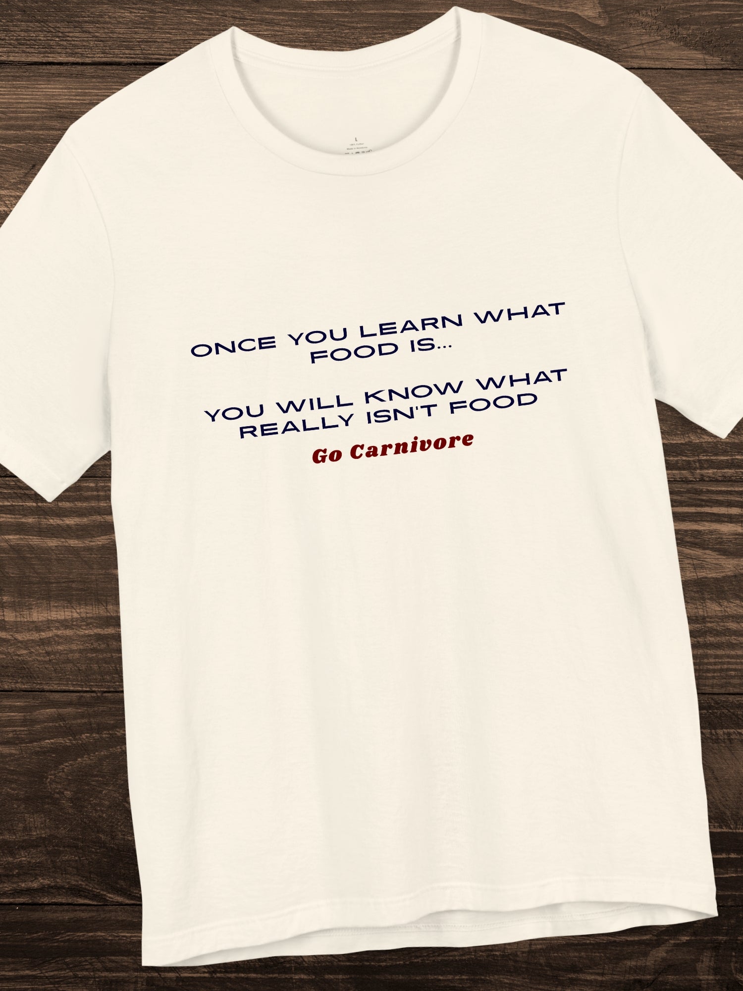 'Once you learn what food is... You will know what really isn’t food, Go Carnivore' Unisex T-Shirt. Printed on a quality Bella+Canvas 3001 T-Shirt.