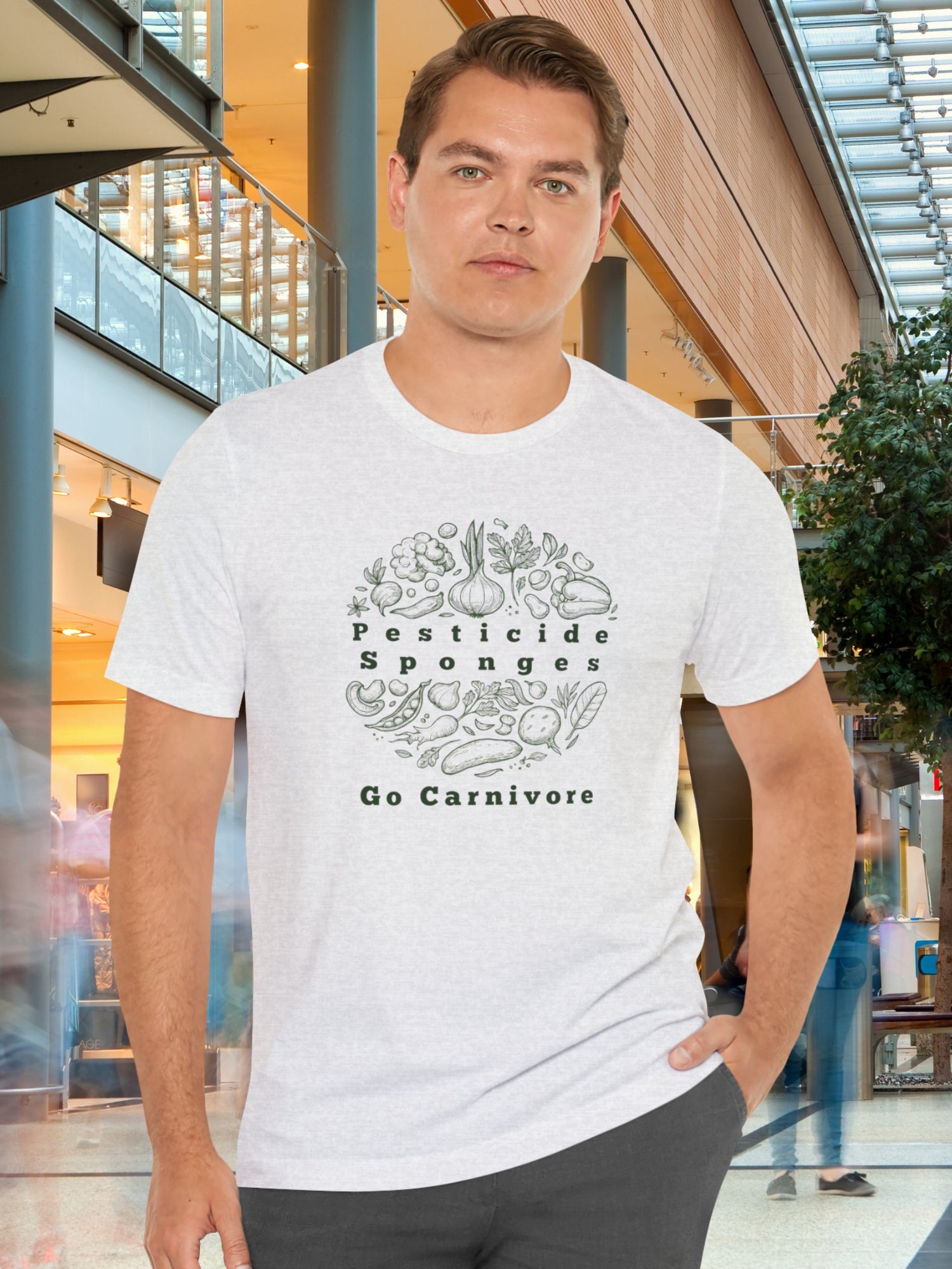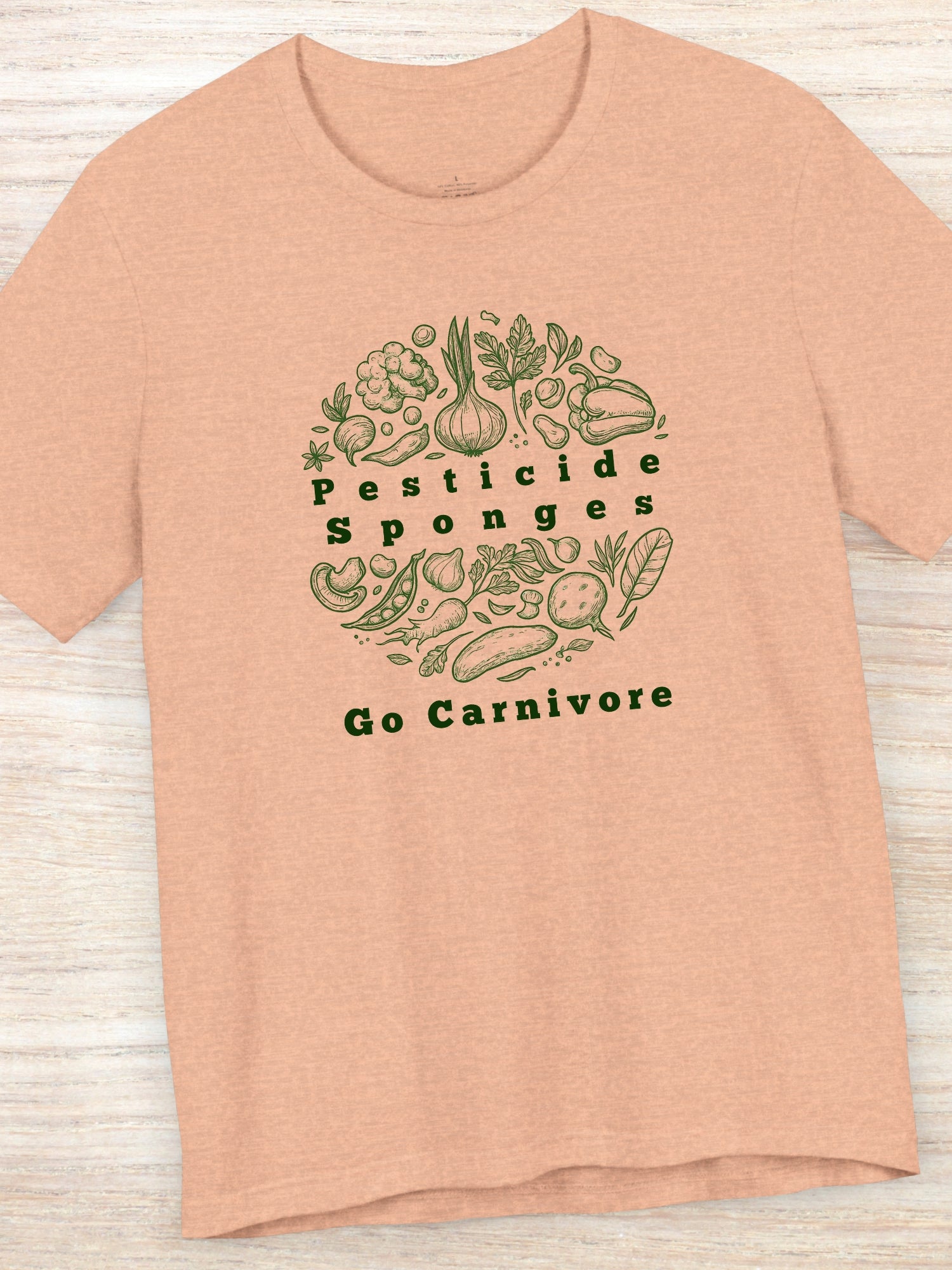 'Pesticide Sponges, Go Carnivore' Vegetable Graphic Unisex T-Shirt, Carnivore Diet Apparel