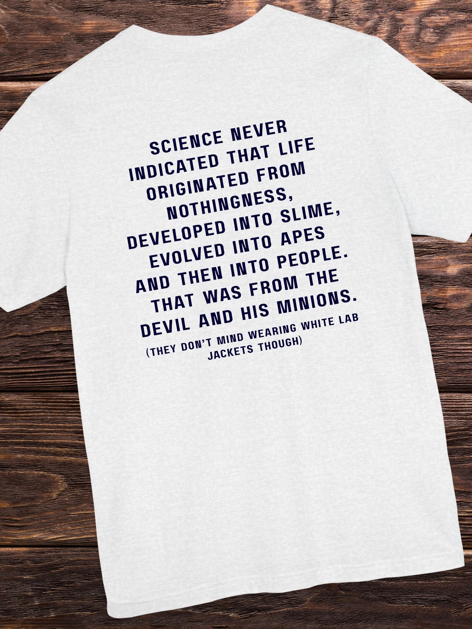 'Science never indicated...' Unisex T-Shirt, Christian Apparel, Anti-Evolution, Pro-Bible