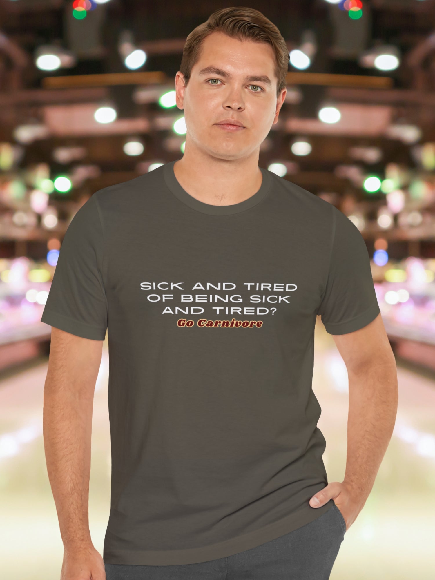 'Sick and tired of being sick and tired? Go Carnivore' Unisex T-Shirt, Carnivore Diet Apparel, Health and Wellness