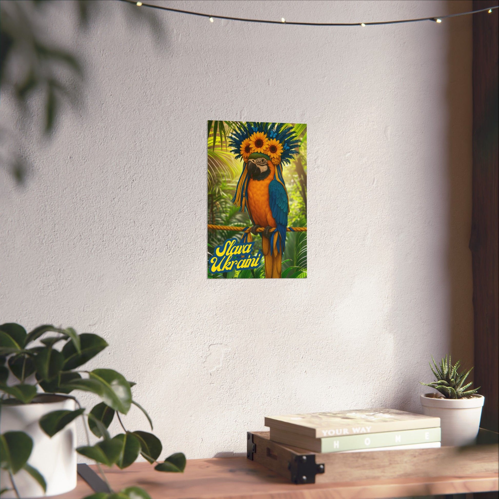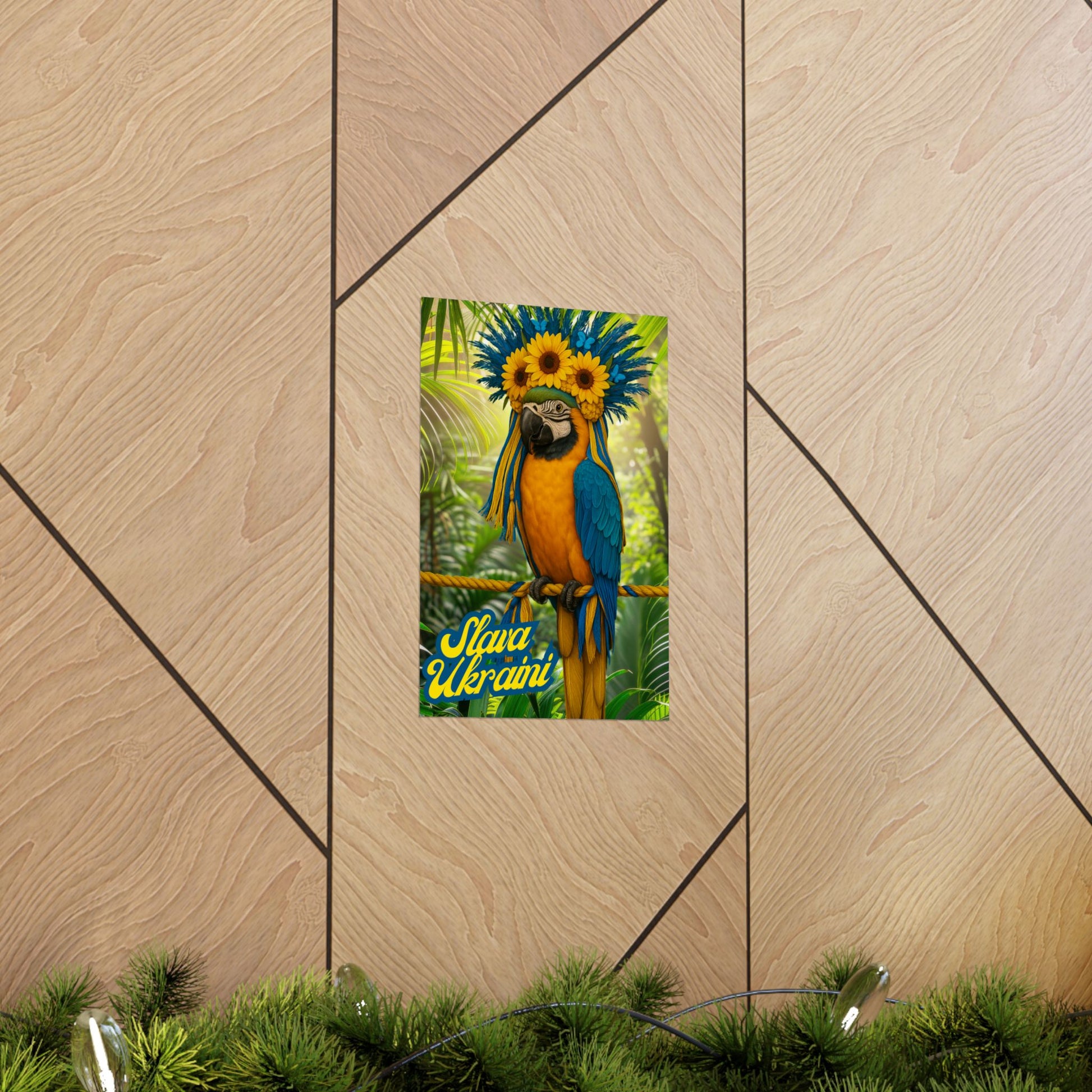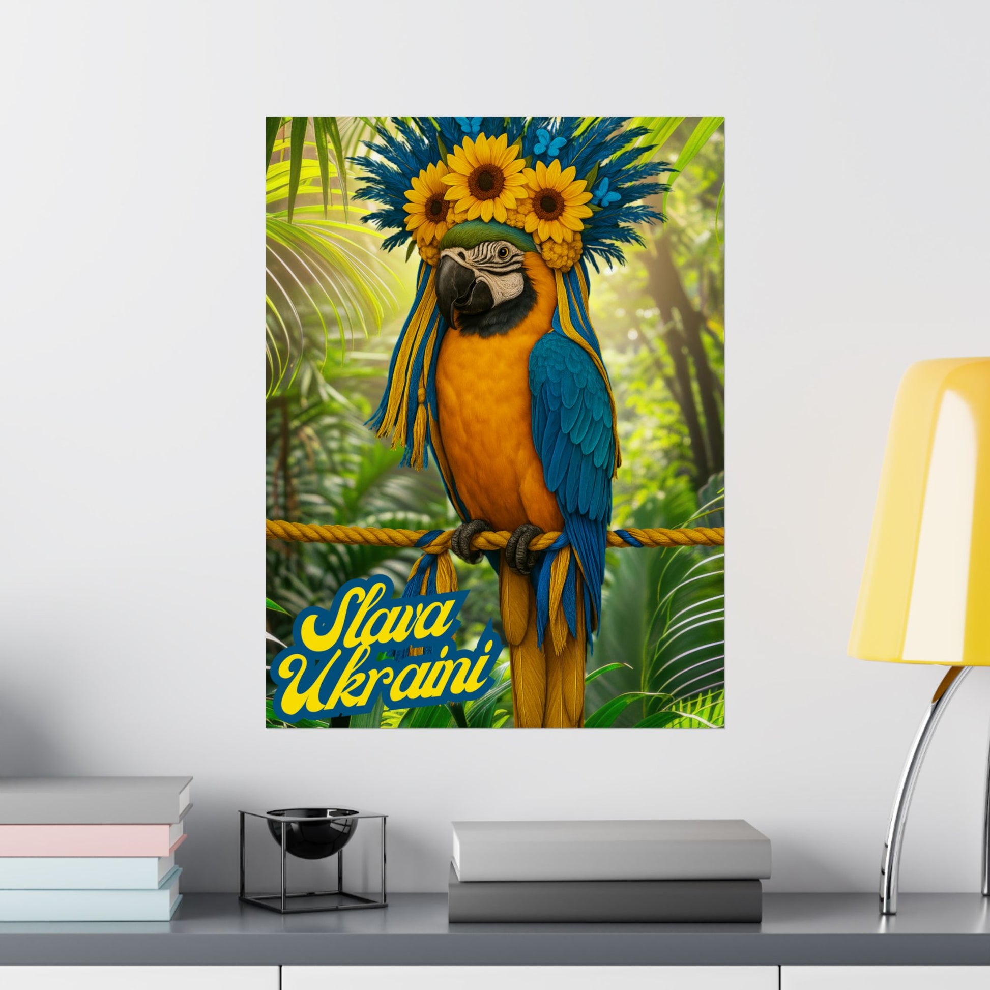 'Slava Ukrani' Blue and Gold McCaw Poster.