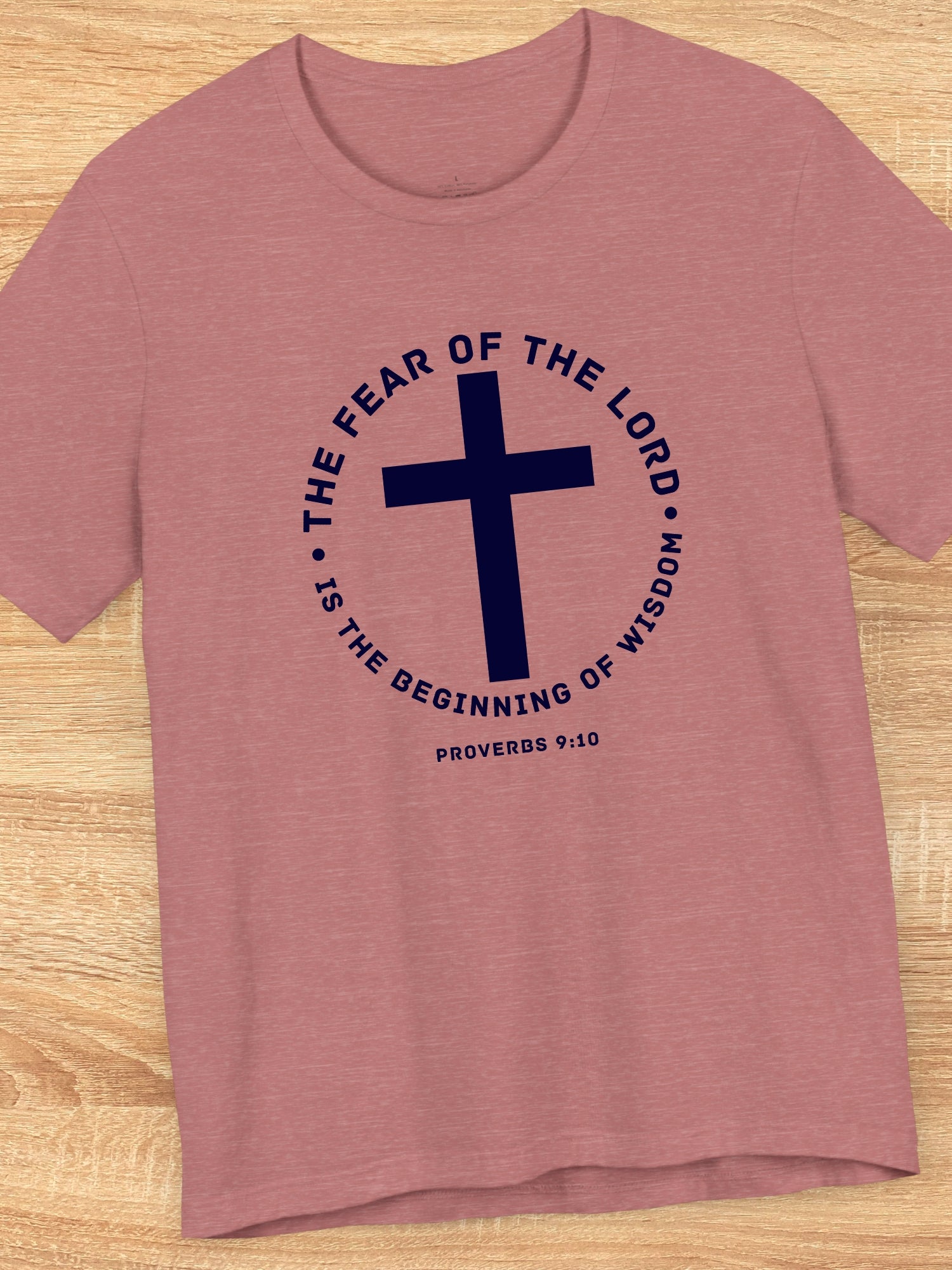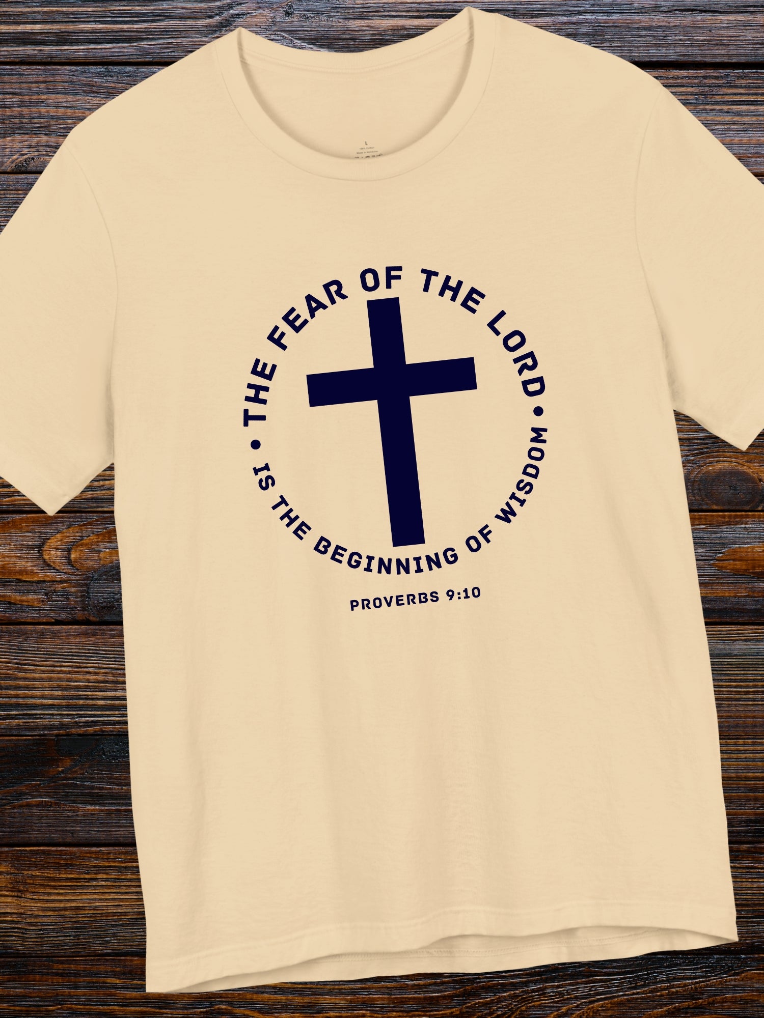 'The Fear of the Lord is the Begginning of Wisdom, Proverbs 9:10' Cross Graphic Unisex T-Shirt. Printed on a quality Bella+Canvas 3001 T-Shirt.
