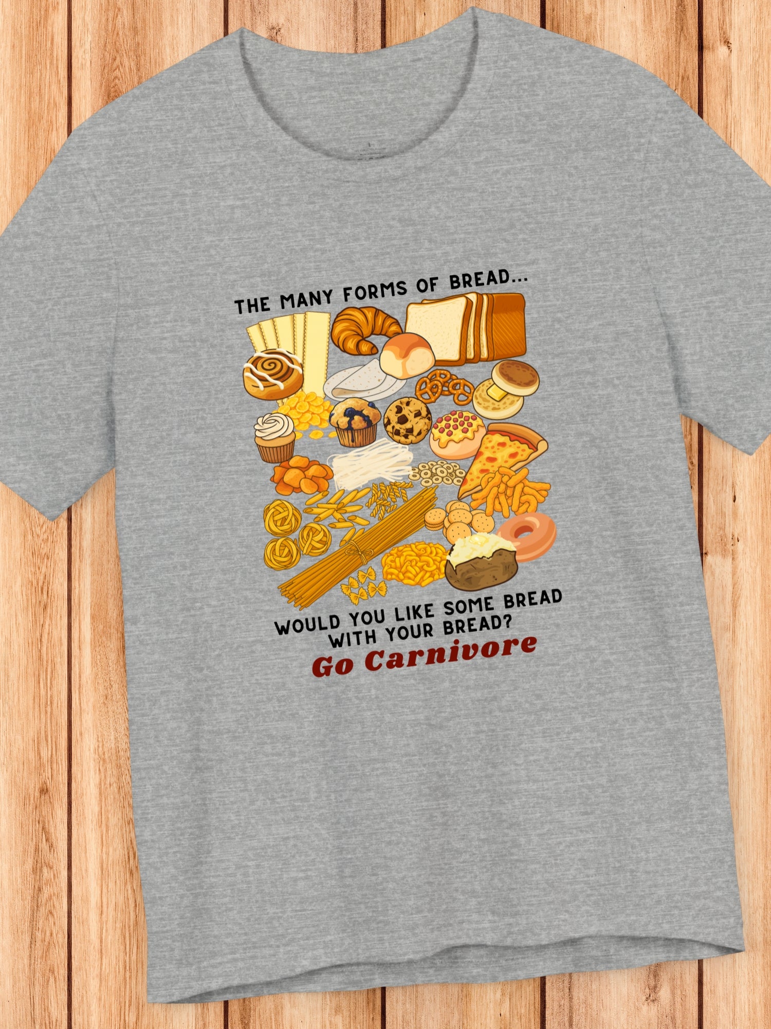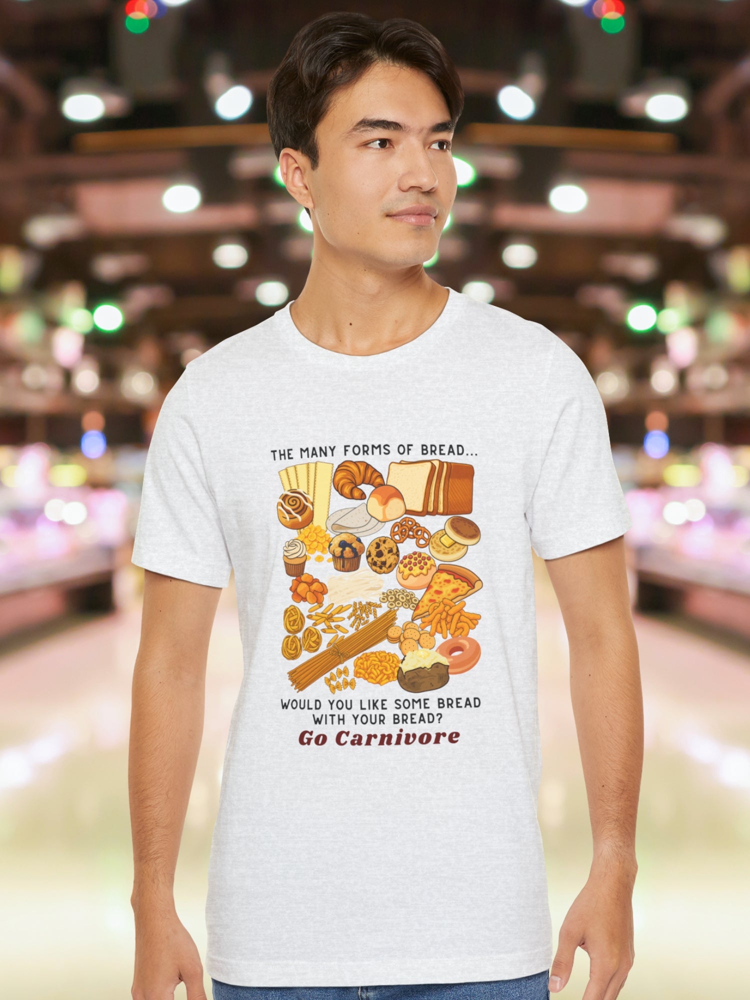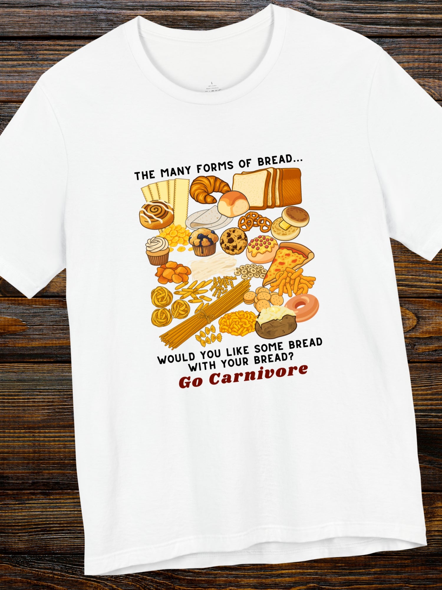 'The Many Forms of Bread... Would You Like Some Bread with Your Bread? Go Carnivore' Forms of Bread Graphic Unisex T-Shirt, Carnivore Diet Apparel, Health and Wellness, Low-Carb Diet, No-Carb Diet