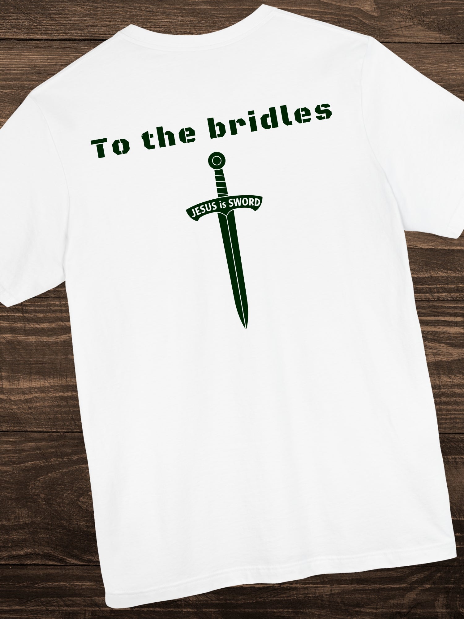 'To the bridles, Jesus is Sword' Back Graphic Unisex T-Shirt, Christian Apparel, Jesus Tee