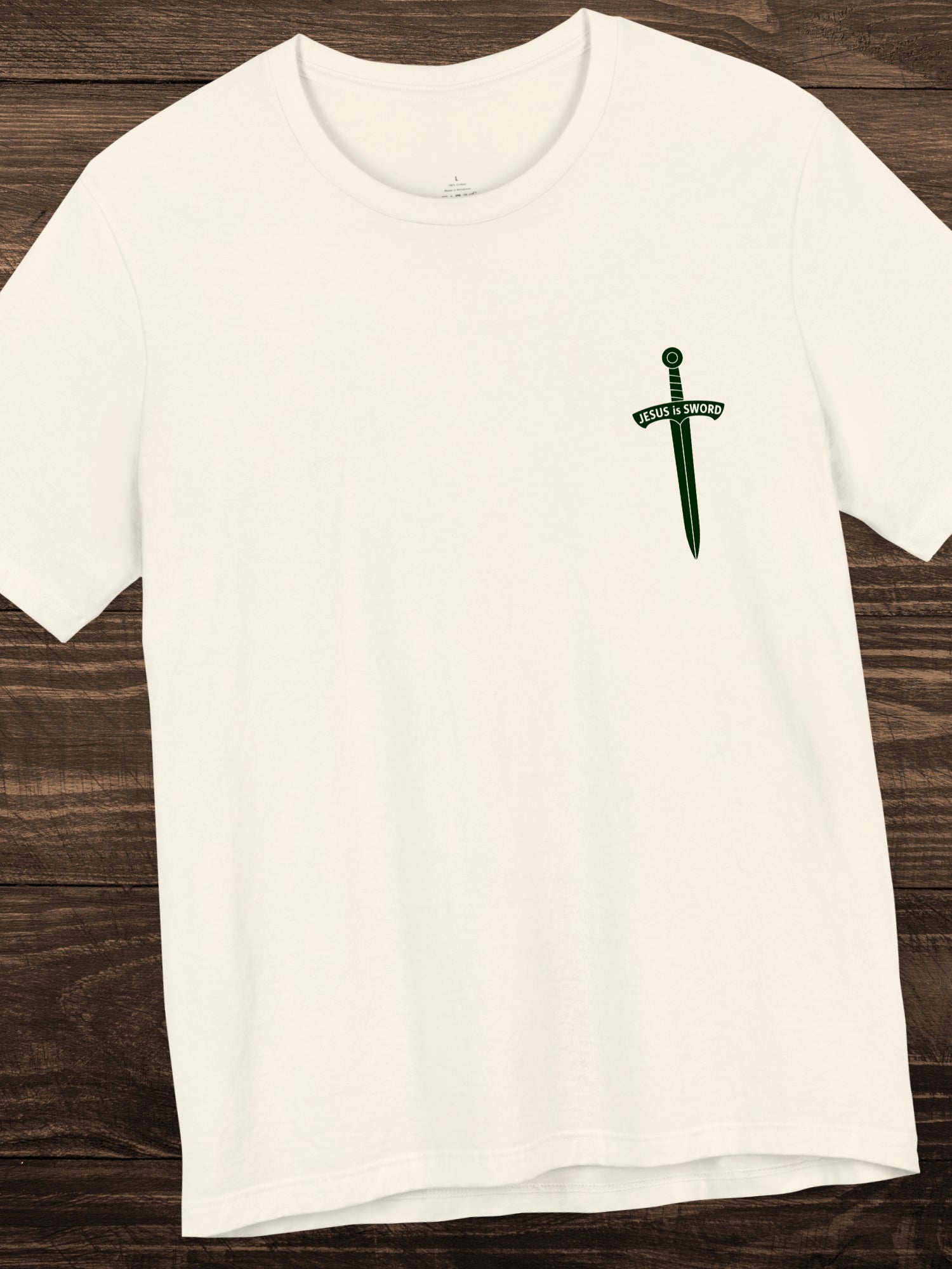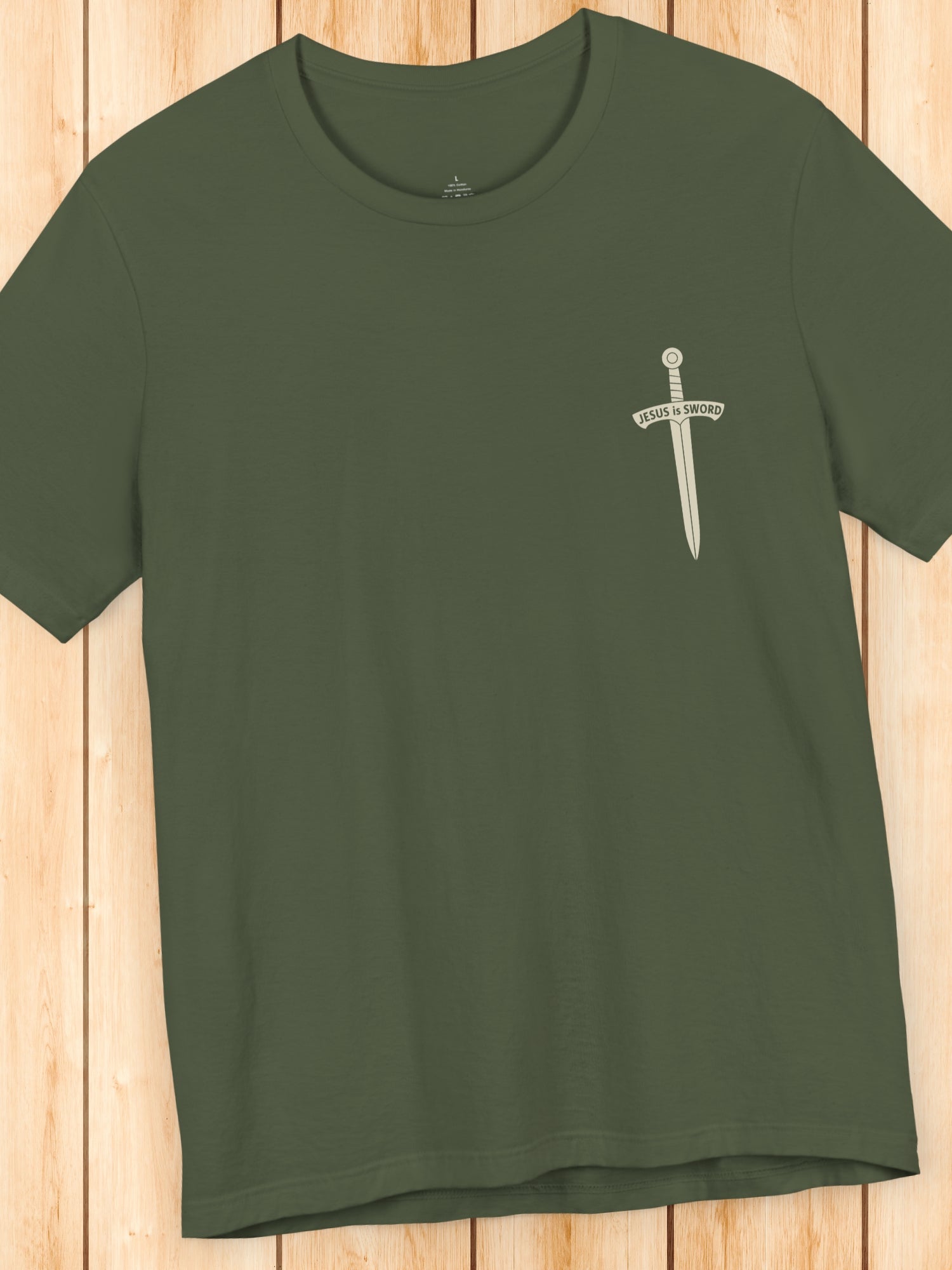 'To the bridles, Jesus is Sword' Back Graphic Unisex T-Shirt. Printed on a quality Bella+Canvas 3001 T-Shirt.