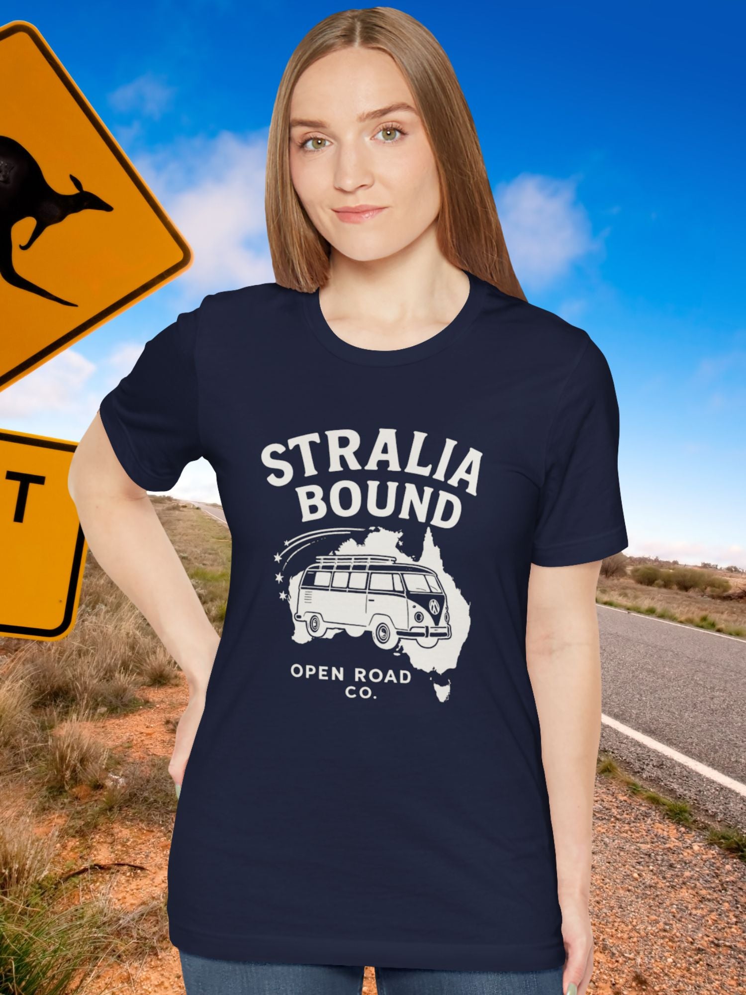 'Stralia Bound' Classic Van Graphic Unisex T-Shirt, Adventure Shirt, Road Trip Tee, Gift for Travelers, Australian Vacation Apparel
