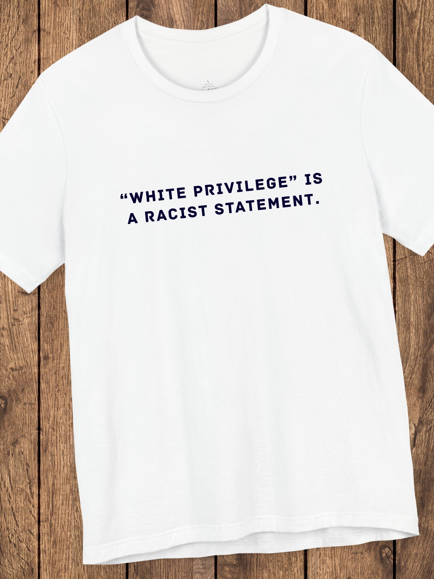 '"White Privilege" Is a Racist Statement' Unisex T-Shirt. Printed on a quality Bella+Canvas 3001 T-Shirt.