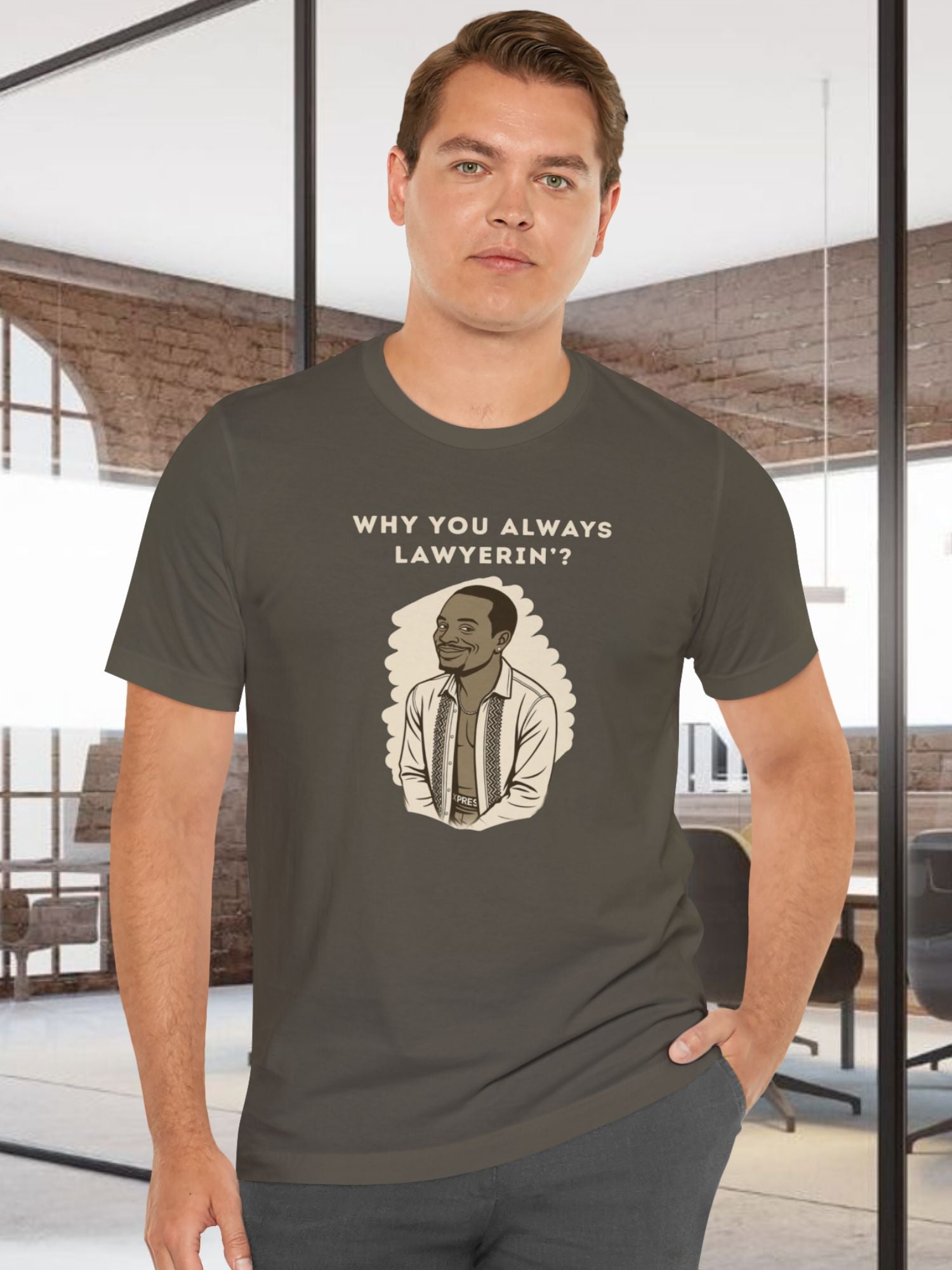 'Why You Always Lawyerin'?' Lawyer Humor Tee, Funny Lawyer Gift, Unisex Graphic T-Shirt, Casual Wear, Law School Apparel, Birthday Gift for Lawyers